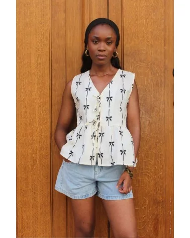 - Top noir et blanc à motifs nœuds