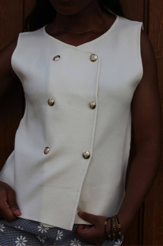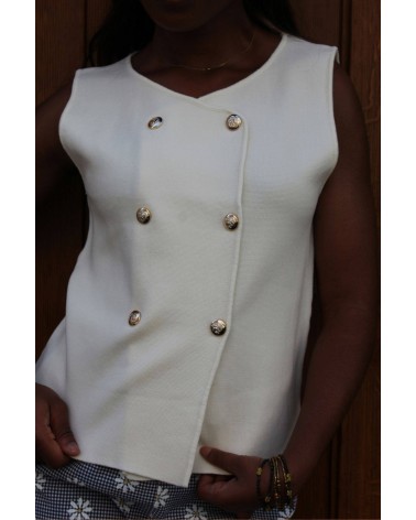 • Top croisé style gilet avec boutons dorés