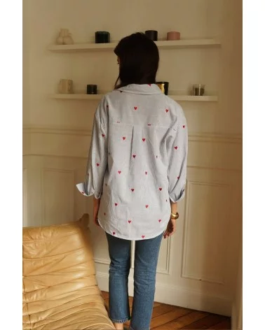 - Chemise bleu ciel à petits cœurs roses