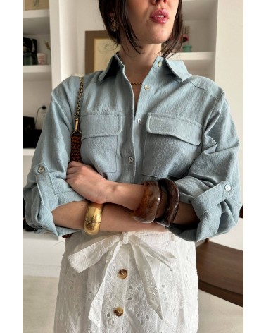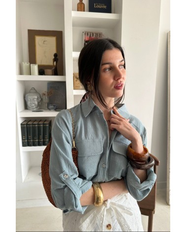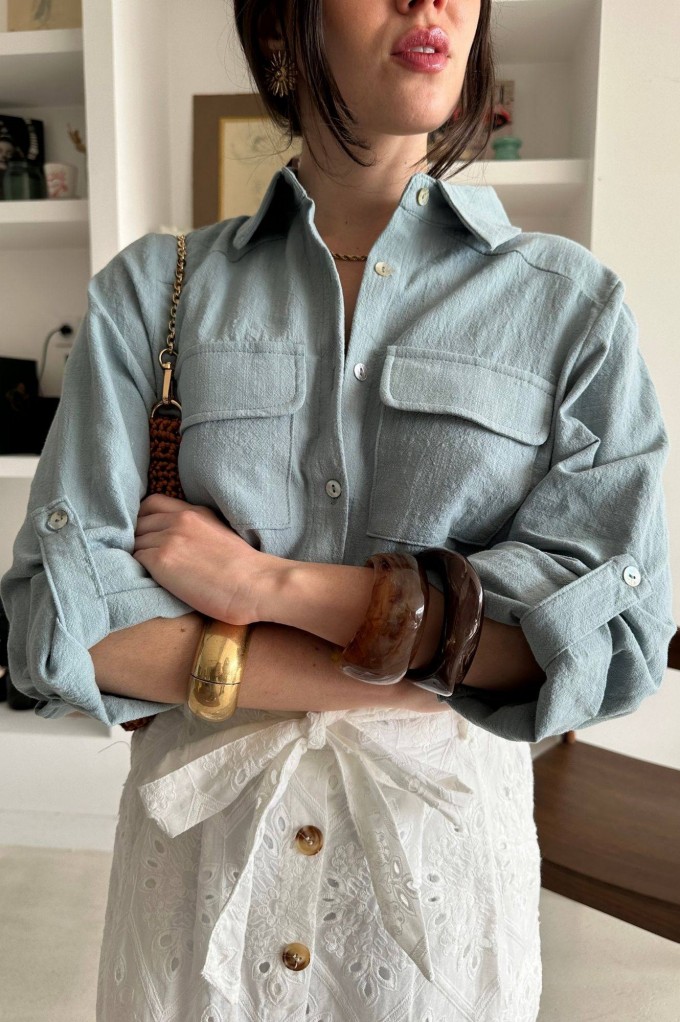 Avec son bleu profond et ses deux grandes poches plaquées sur la poitrine, cette chemise basique a tout bon. Sa ligne épurée et sa matière agréable en font une pièce facile à porter au quotidien, ouverte ou fermée, avec un pantalon chic ou un short casual.