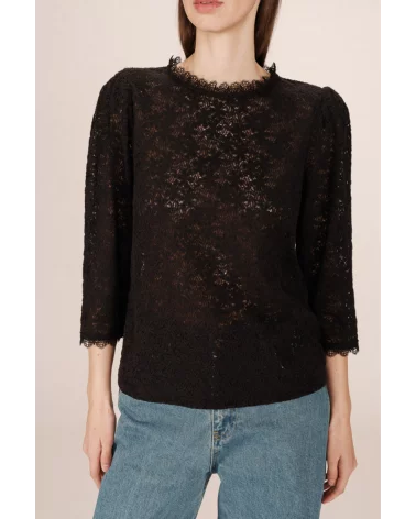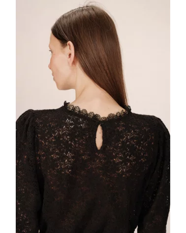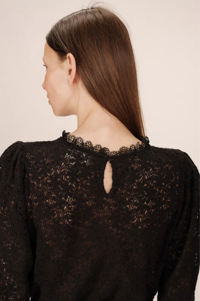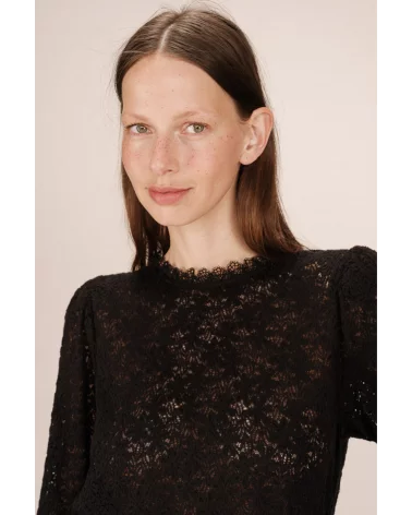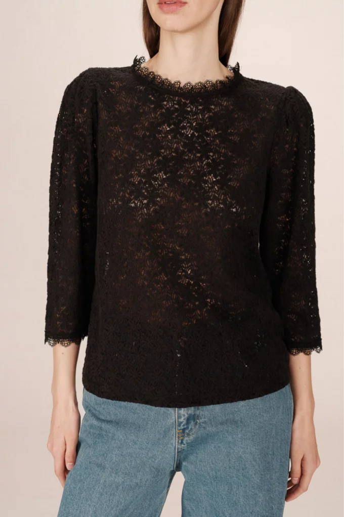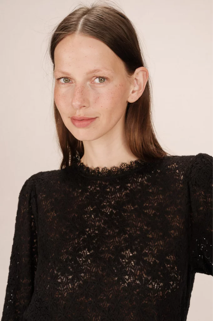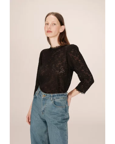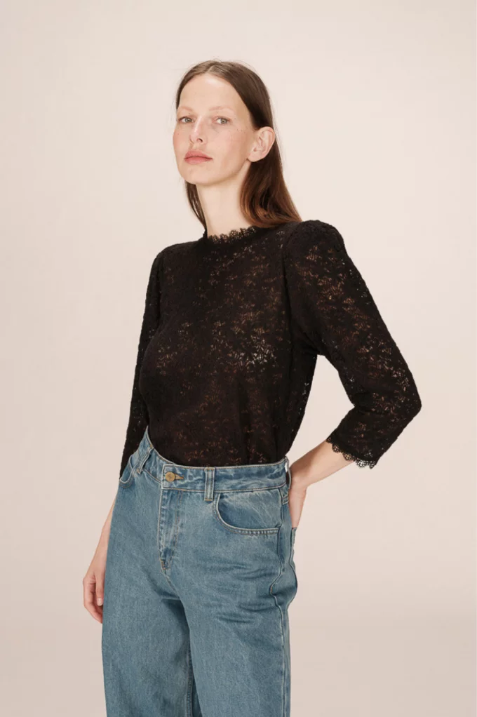 Un basique revisité avec une touche de sensualité ! Découvrez le haut Stella, une pièce en dentelle noire délicate qui joue sur la transparence tout en élégance.