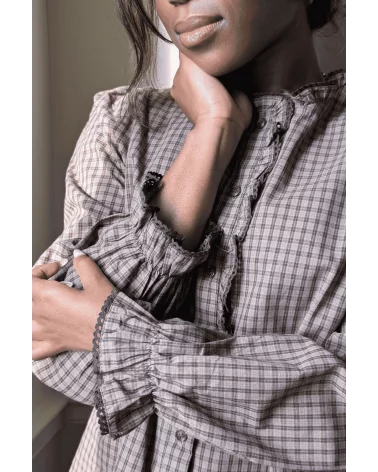 Succombez au charme intemporel de la chemise Taraine Marron, une pièce au style vintage et féminin inspirée de l’élégance champêtre. Son motif à carreaux marron et écru, combiné à son col volanté délicat et sa patte de boutonnage ornée de volants, confère à cette chemise une allure à la fois romantique et authentique. Polyvalente et élégante, la chemise Taraine se porte aussi bien rentrée dans un jean pour un look casual chic, que sous un gilet en maille ou un pull sans manches pour un style plus bohème et automnal. Allez, hop dans la box.