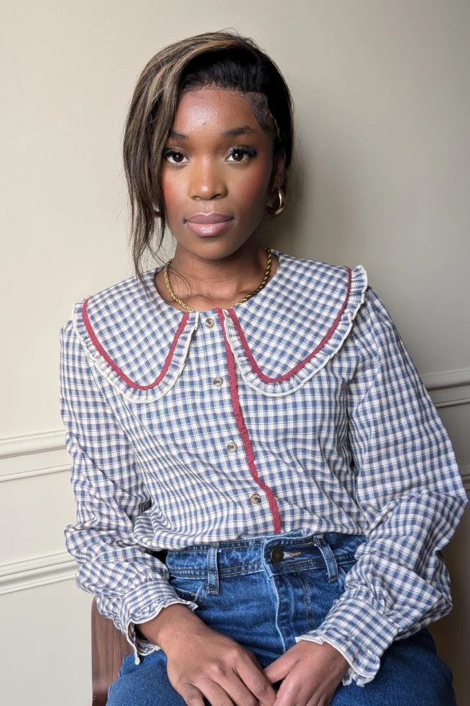 Son grand col Claudine à volants, bordé d’un liseré rouge contrastant, apporte une touche romantique et affirmée à votre tenue. La patte de boutonnage soulignée du même liseré renforce ce jeu de contraste subtil, tandis que les manches longues légèrement froncées et les poignets volantés complètent son allure délicate et soignée. Allez hop, dans la box !