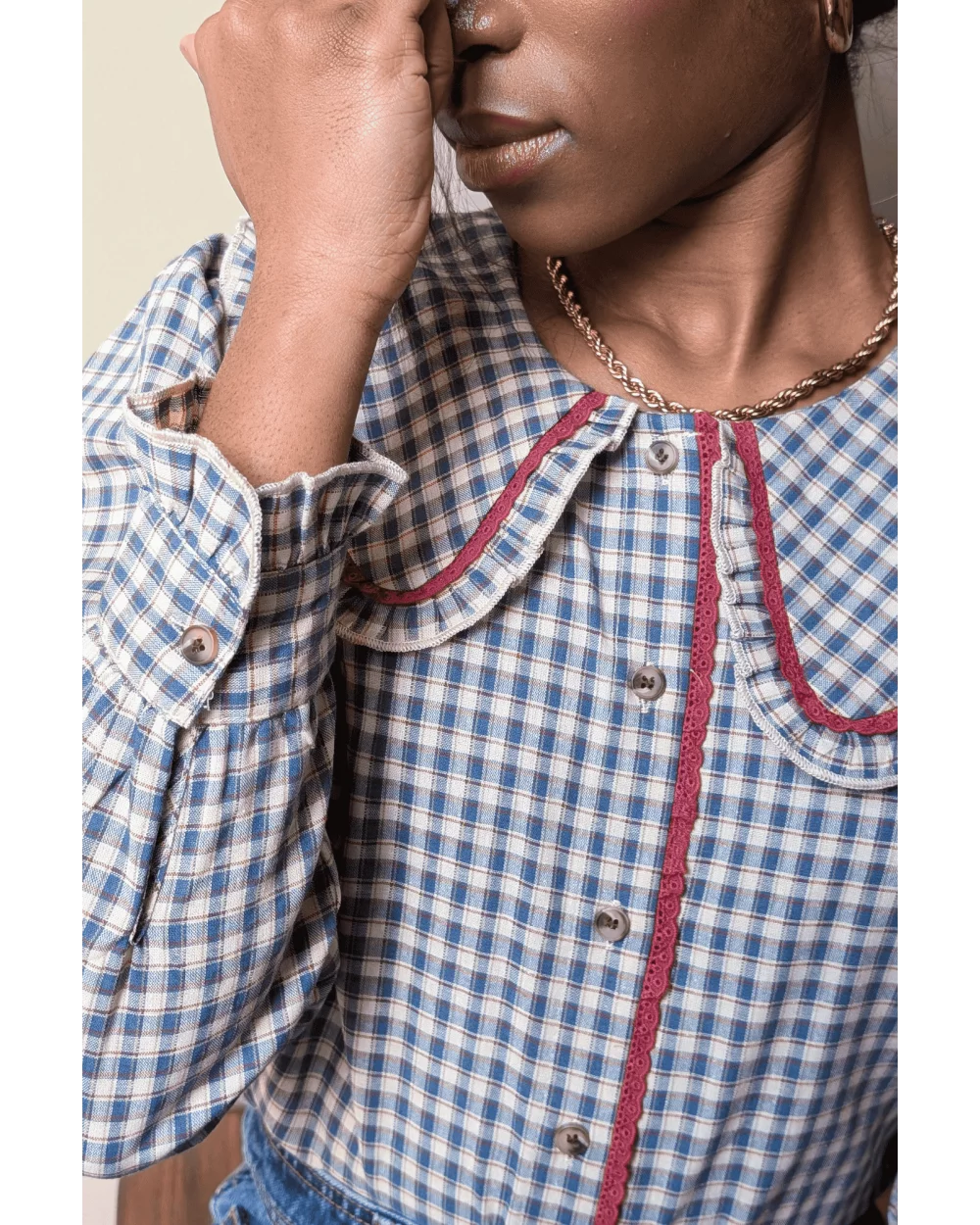 Plongez dans l’univers délicat et rétro de la chemise Tilia signée Lili Lala, une pièce à la fois féminine, originale et pleine de charme. Confectionnée en 100 % coton, cette chemise à carreaux bleus et écrus séduit par ses finitions raffinées et son style vintage revisité.