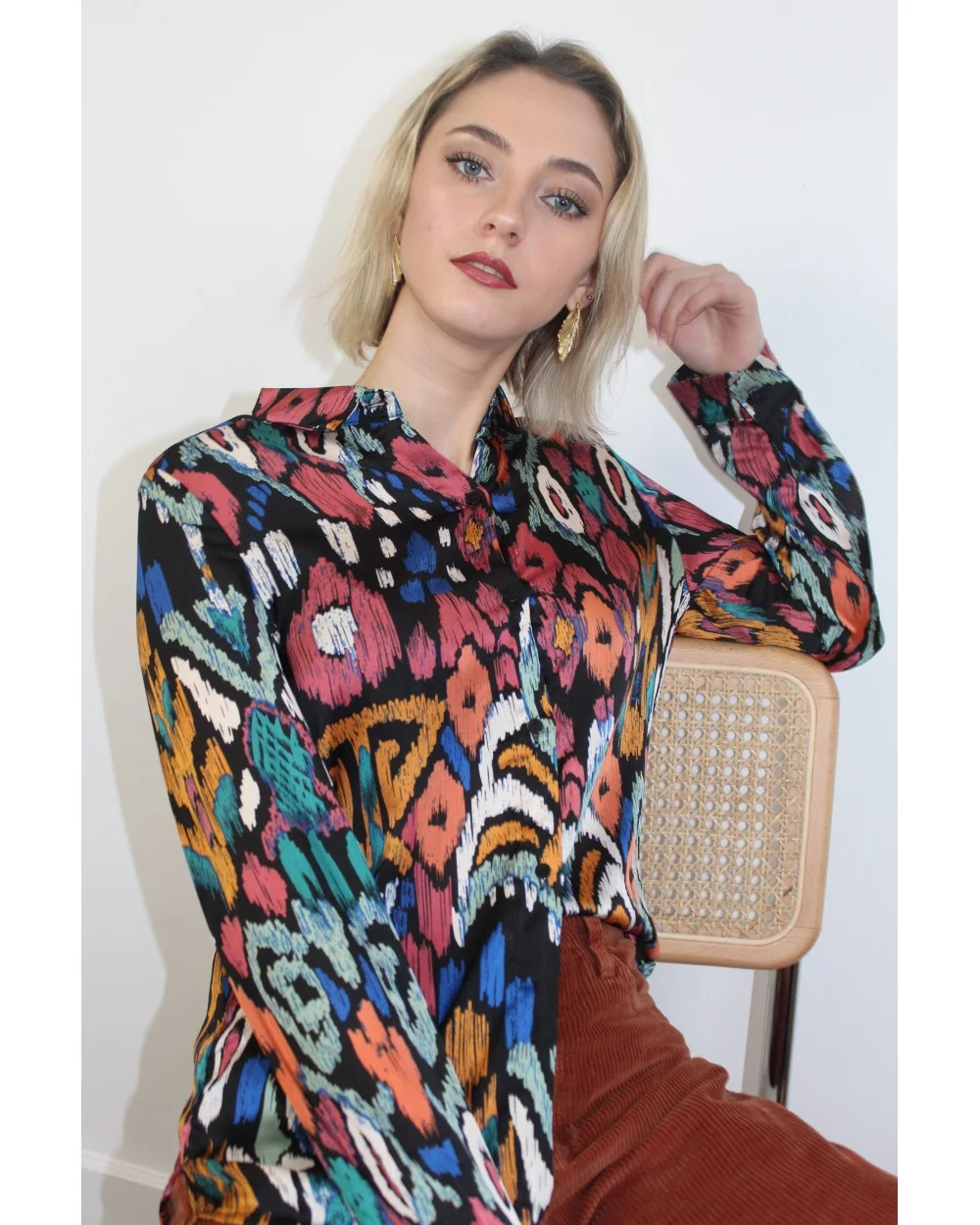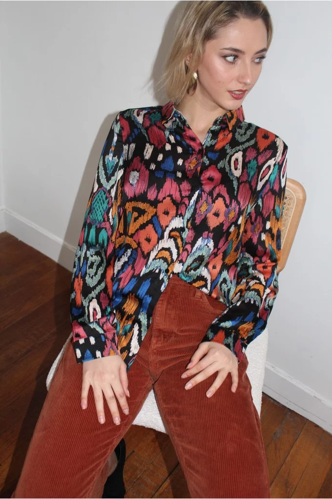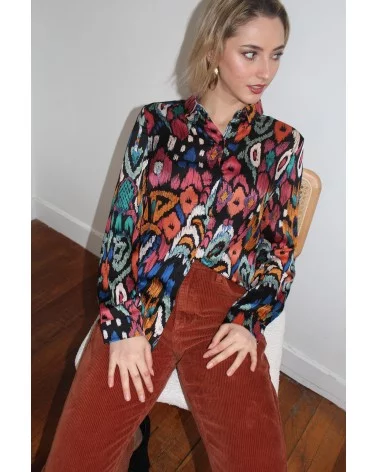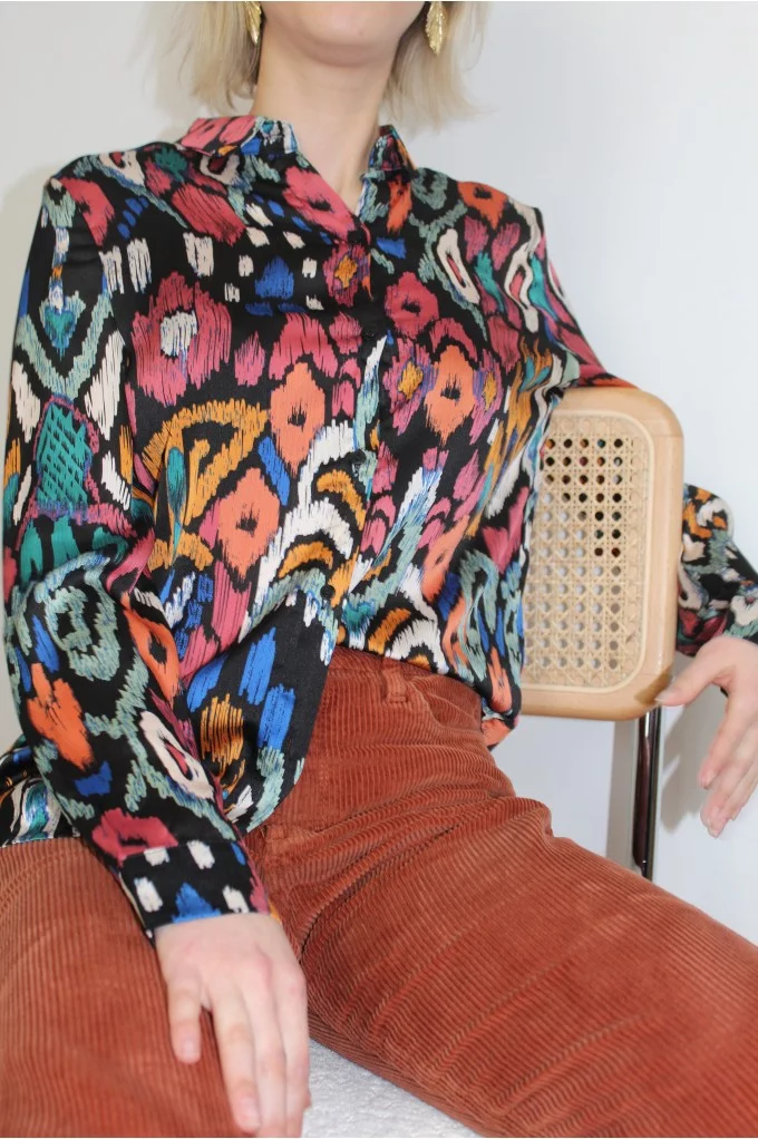 Marina est une blouse classique. Son motif abstrait et coloré lui donne une allure arty. Elle saura mettre de la couleur dans votre quotidien ! Louez-la !