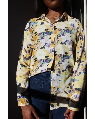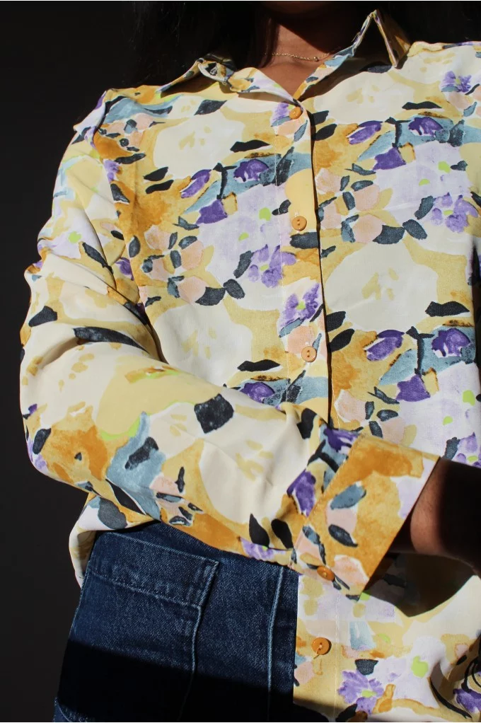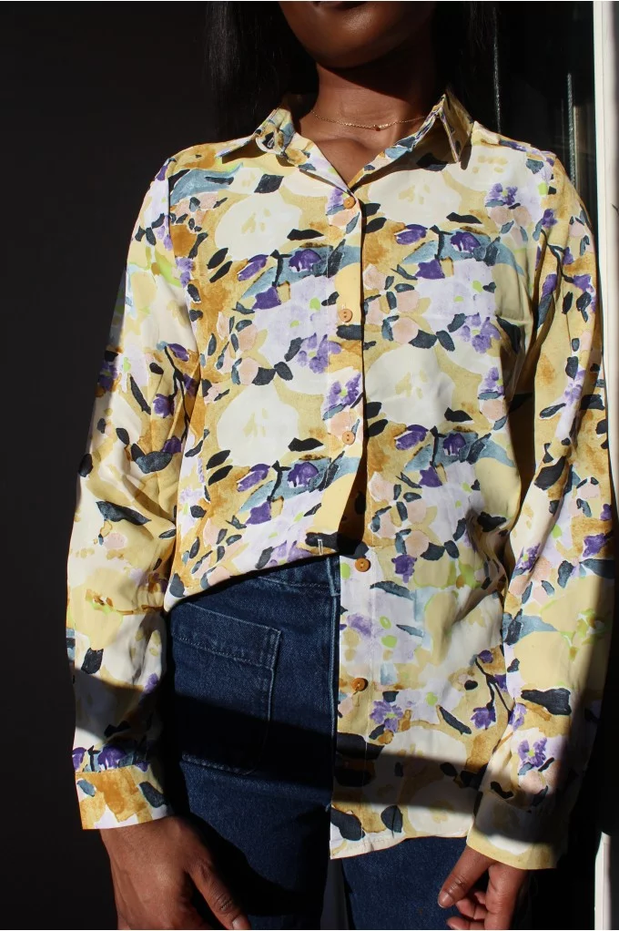 La blouse Marie est une blouse fluide à motifs. Elle apportera de la couleur et du confort à vos jours. On aime la porter avec les manches roulées pour lui donner une allure décontractée. Louez-la !