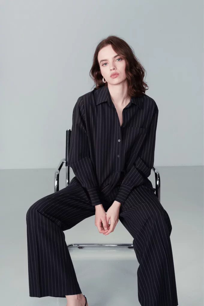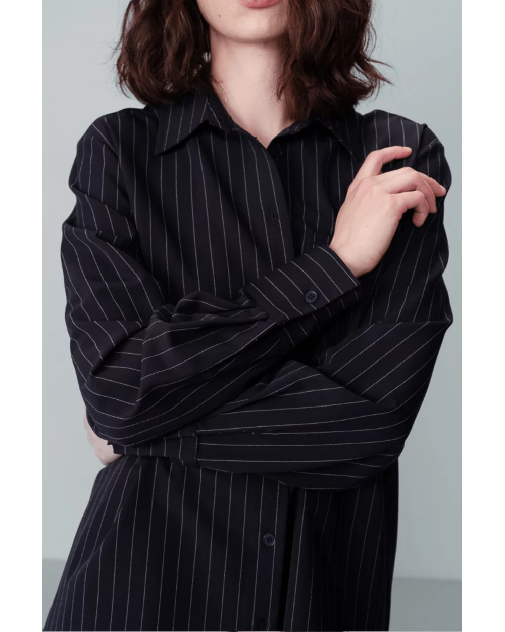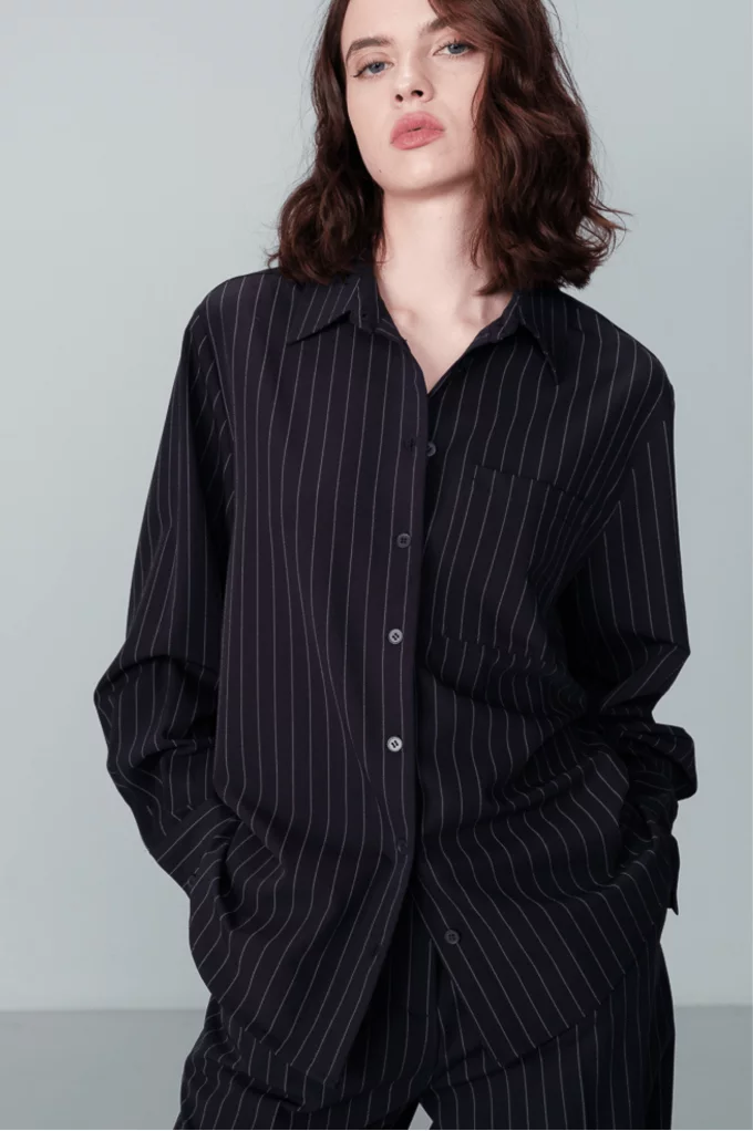 La mannequin mesure 1m70 et porte une taille S. La chemise taille normalement.