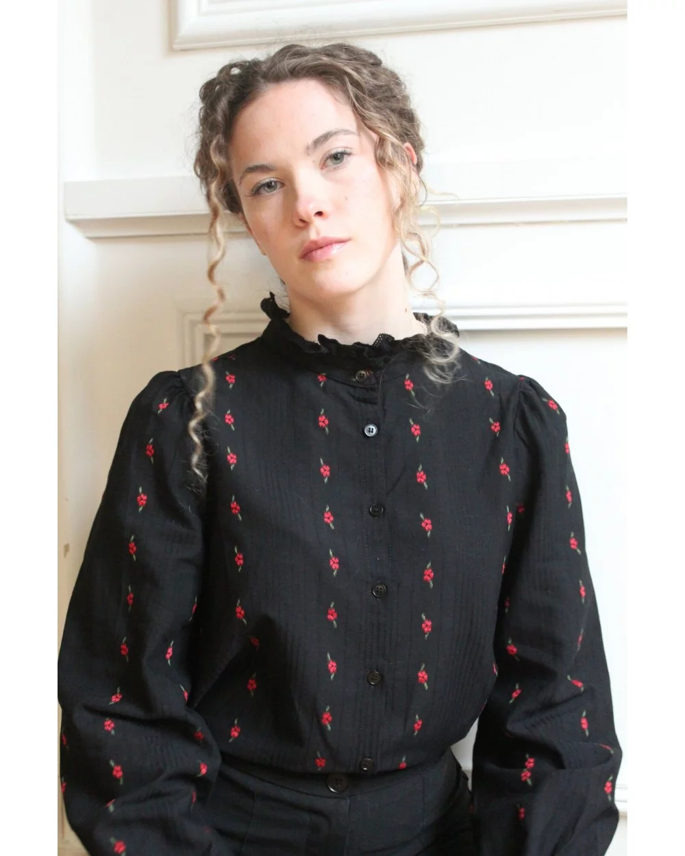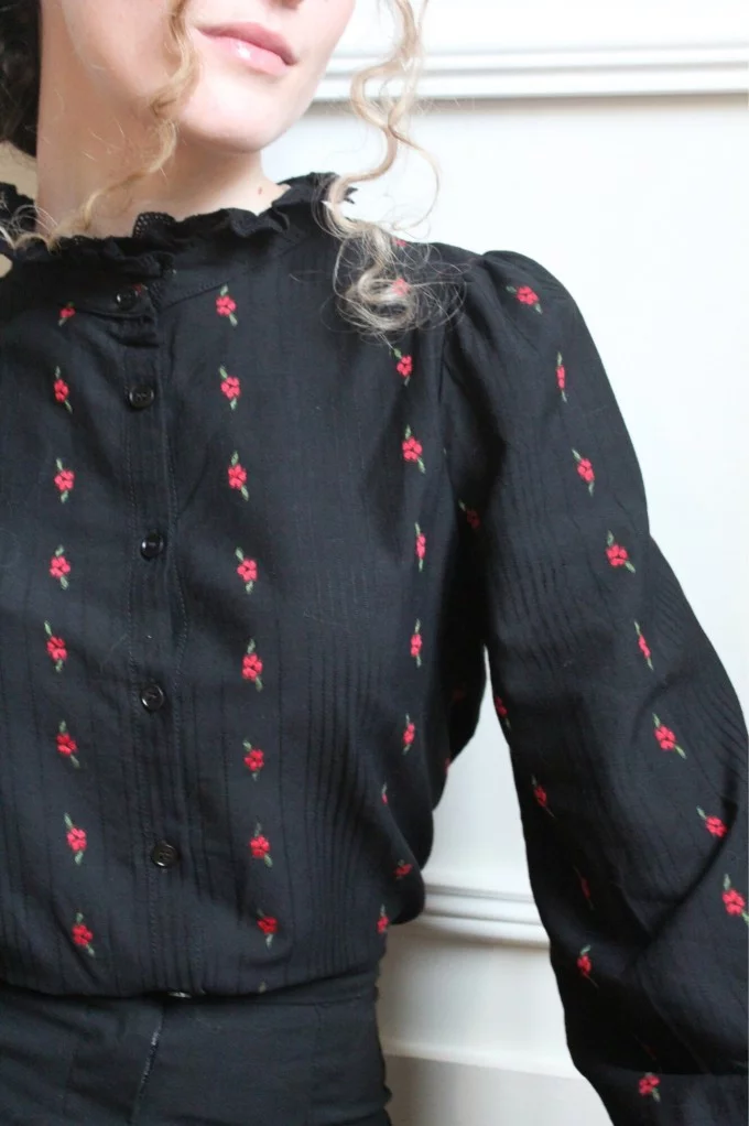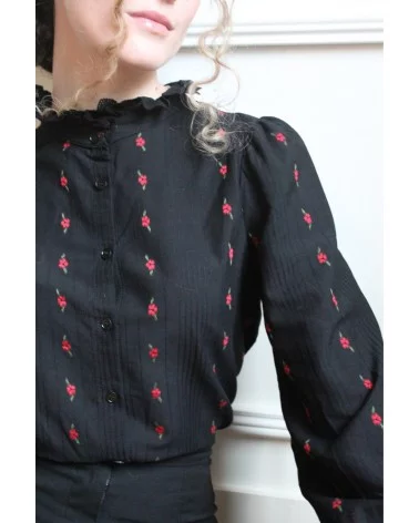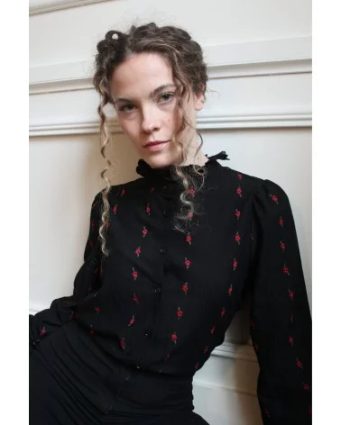 Ajoutez une touche de romantisme et de raffinement à votre garde-robe avec la chemise Patricia, délicatement ornée de petites fleurs rouges brodées. Son allure intemporelle et ses détails subtils en font une pièce idéale pour un look chic et féminin. Allez hop, dans la Box !