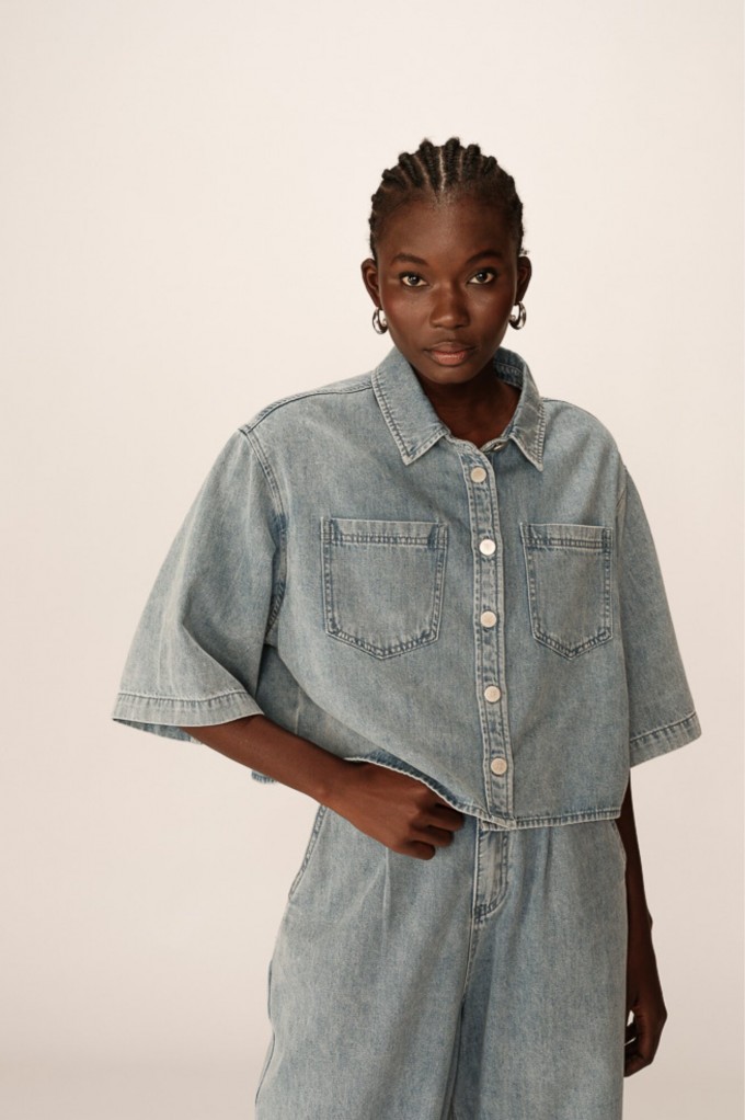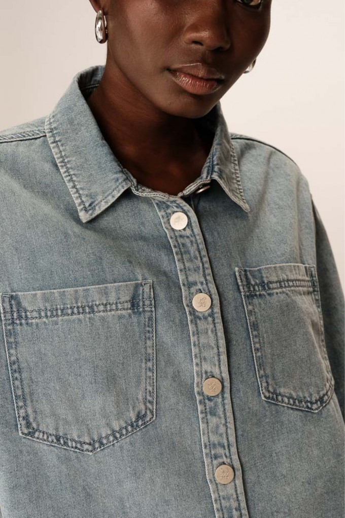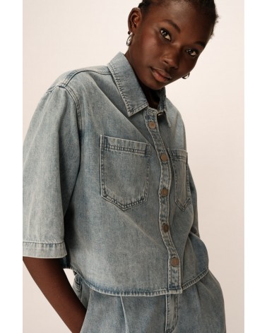 Affirmez votre style avec la chemise Pomona, un indispensable du dressing en denim. Sa coupe oversize offre un confort absolu tout en apportant une touche tendance. Avec ses manches courtes larges, ses deux poches plaquées et sa fermeture boutonnée, elle allie parfaitement style décontracté et modernité. Allez hop dans la box !