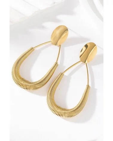Laissez vous séduire par les boucles d'oreilles Ondia dorées au design audacieux. Légères et modernes, elles s’adaptent parfaitement à une tenue chic ou décontractée, ajoutant du mouvement et du style à chaque look.