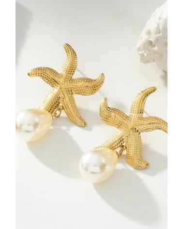 Ajoutez une touche d’élégance marine à votre tenue avec les sublimes boucles d'oreilles Corail. Inspirées par la beauté de l’océan, ces boucles se distinguent par leur design en forme d’étoile de mer dorée, délicatement texturée pour un rendu authentique et raffiné. Chaque étoile de mer est ornée d’une perle nacrée pendante, apportant une touche de sophistication et de féminité à votre look