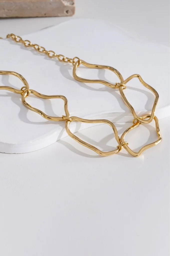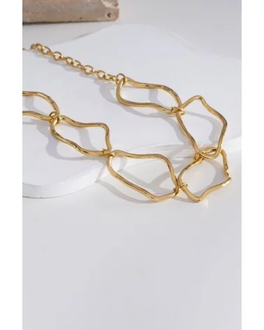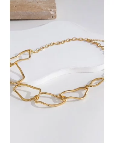 Ajoutez une touche d'élégance à vos tenues avec le collier Dina. Ses maillons aux formes irrégulières apportent une esthétique moderne et sophistiquée, parfait pour sublimer vos looks de jour comme de soirée.