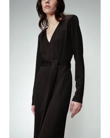 L'encolure en V, la coupe droite et la ceinture à la taille flattera à la perfection votre silhouette. N'attendez plus et louez la !