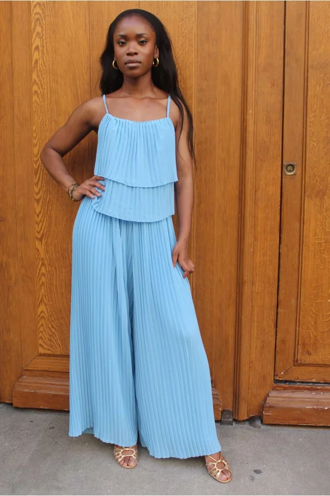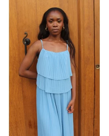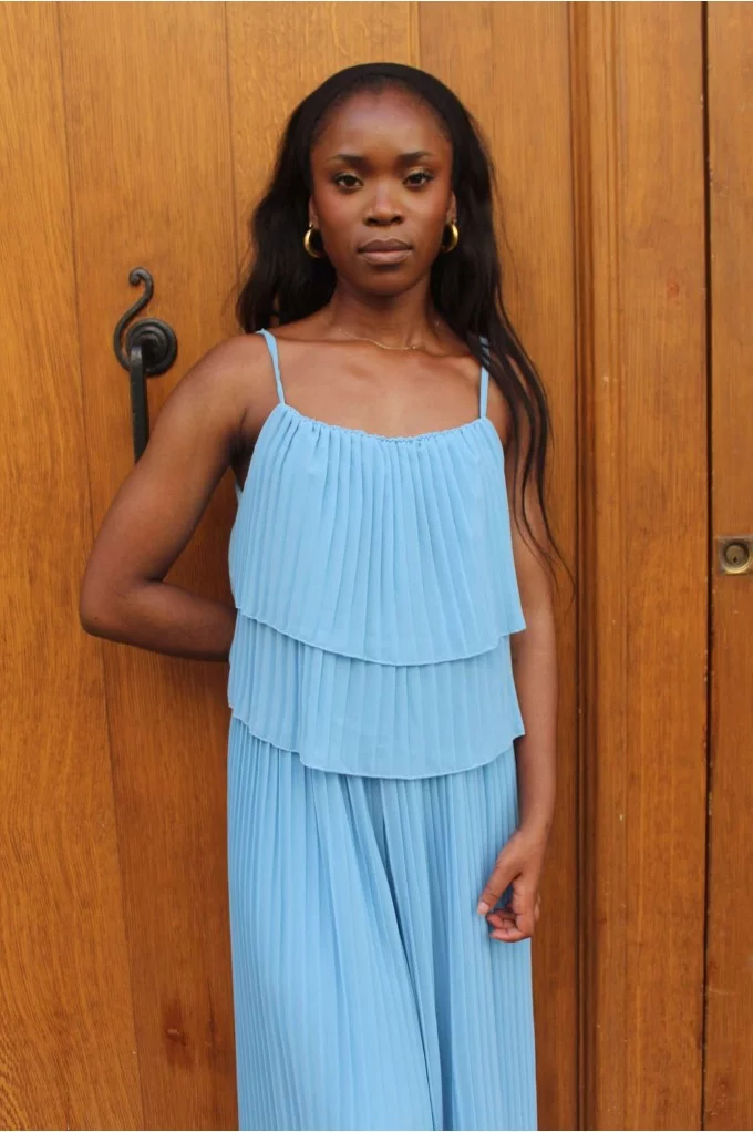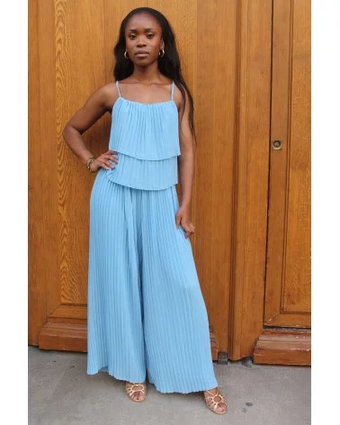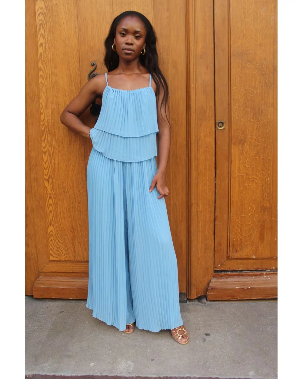 Entièrement plissée, elle joue avec la lumière et les mouvements pour une allure fluide et sophistiquée. Sa teinte bleu ciel apporte une touche de fraîcheur et de douceur, idéale pour une cérémonie estivale ou un mariage. Confortable, moderne et ultra chic, Fluffy bleu est une vraie alternative à la robe.