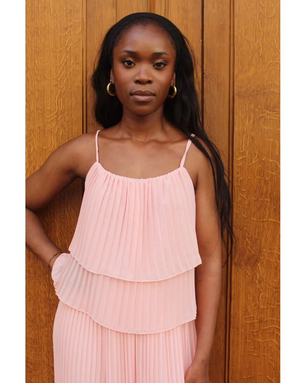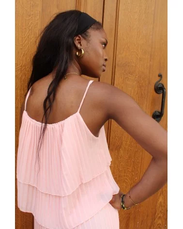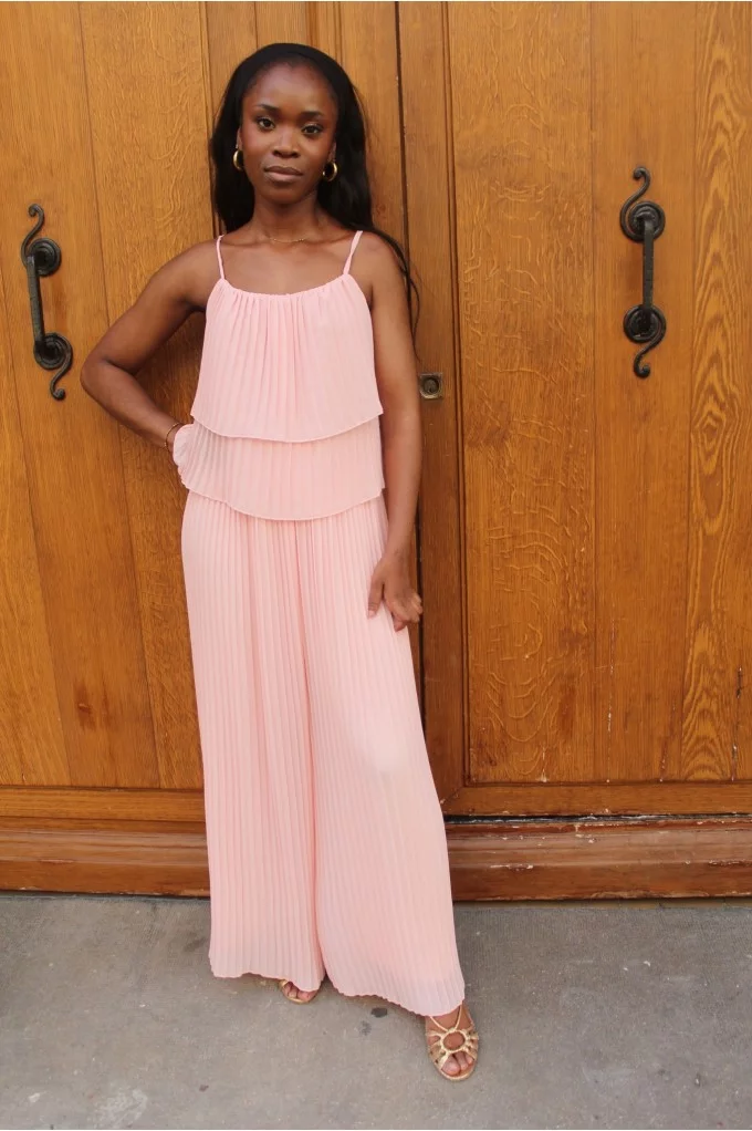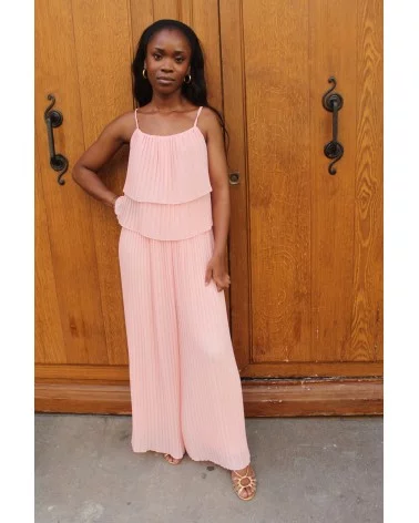 Fluffy rose est une combinaison élégante et fluide, entièrement plissée, qui séduit par sa couleur rose douce et lumineuse.