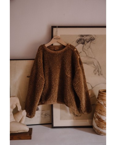Le Pull Jamy moumoute est un véritable cocon de douceur. Avec son tissu moelleux et sa coupe décontractée, il offre confort et chaleur tout en ajoutant une touche de cosy au style de bébé.