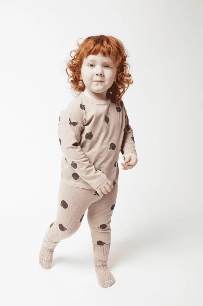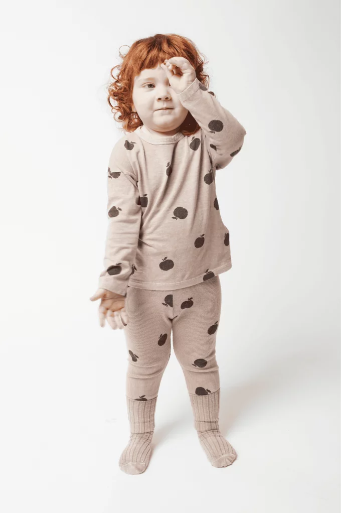 Le Legging Petit Beige à motif de pommes est à la fois mignon et confortable. Avec ses motifs ludiques et sa matière douce, il offre à votre bébé une belle liberté de mouvement tout en apportant une touche de fraîcheur et de gaieté à ses tenues.
