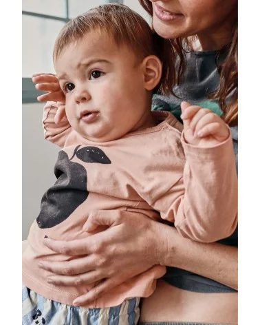 Craquez pour le top Big Apple de Bobo Choses, un vêtement doux et confortable, parfait pour habiller votre bébé avec style au quotidien. Son imprimé pomme iconique, sur un fond rose poudré, apporte une touche ludique et tendance. Plus besoin d'hésitez, louez le !