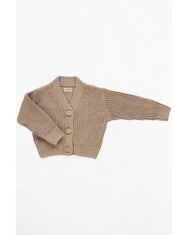 Le cardigan Ourson avec des boutons en bois à l'avant est à la fois chic et pratique.