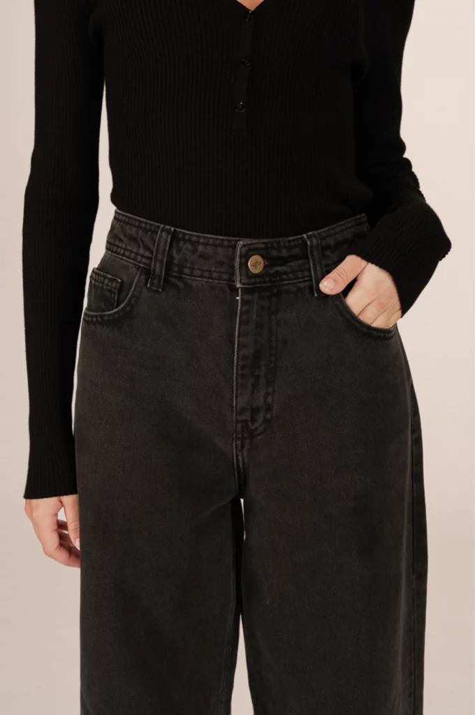 Un denim revisité avec caractère ! Le jean Jonas noir délavé mise sur une coupe large 7/8e ultra tendance, pour une silhouette affirmée. Taille haute et jambes larges, il mixe confort et style avec brio. Allez hop dans la box !