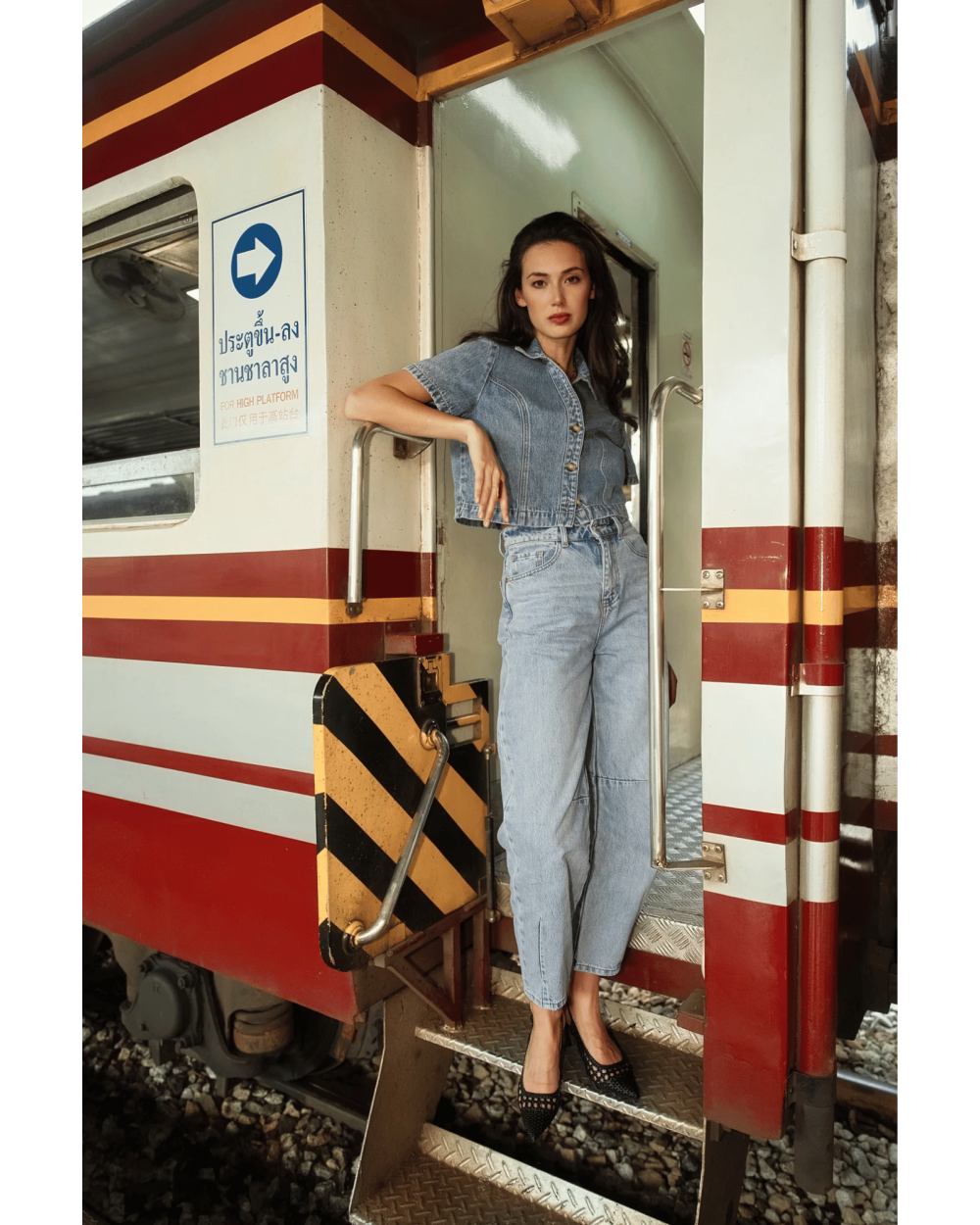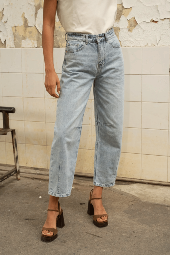 Le jean Brandy adopte une coupe balloon, reconnaissable à son volume arrondi et contemporain. Ajusté à la taille, il dévoile une jambe plus ample au niveau de la cuisse et du genou, puis se resserre délicatement à la cheville. Aller hop, dans la box !