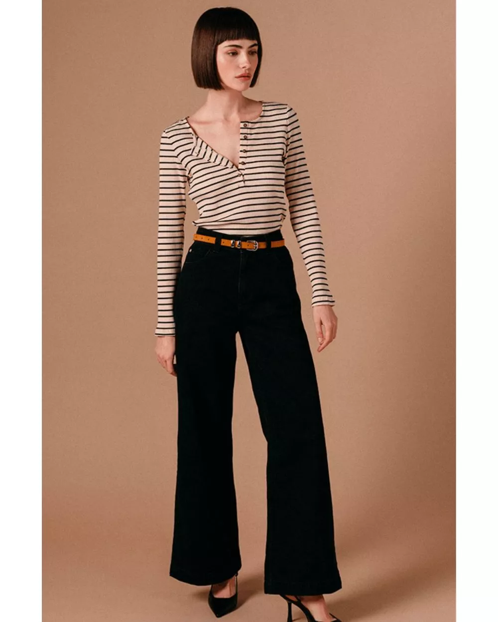 La mannequin mesure 1m70 et porte une taille S. Optez pour votre taille habituelle. Ce pantalon est à porter avec des chaussures à talon pour les femmes mesurant moins d'1m63.