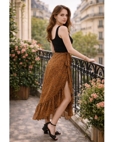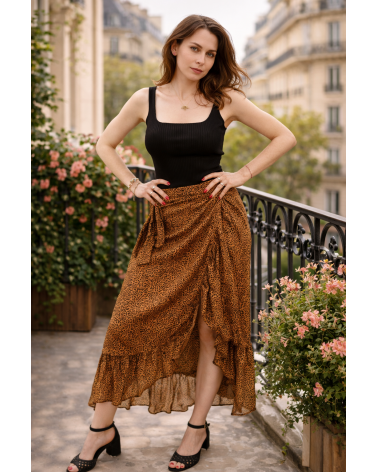 Avec son motif léopard, la jupe Bertille est une pièce originale que vous pourrez facilement accorder avec un haut plus près du corps.