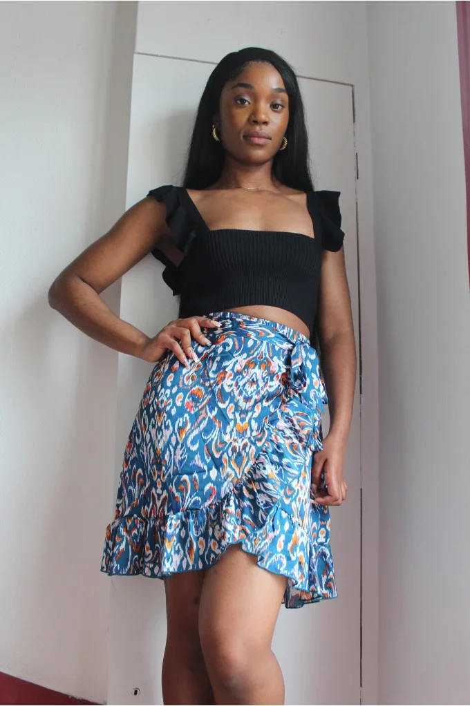 La jupe Monnia est une jupe courte à motif. On adore ses couleurs harmonieuse qui seront le rayon de soleil de votre garde-robe. Ses volants apporteront subtilité et élégance à votre look. Allez hop dans la box !