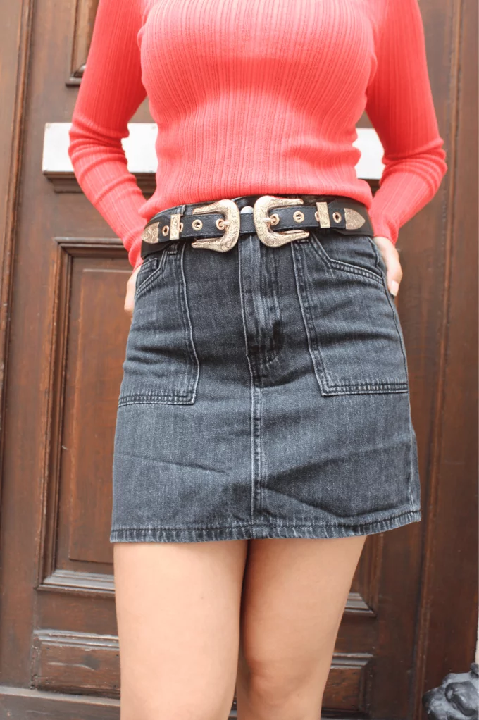 La jupe Norah est une jupe en denim noir classique. Ajustée à la taille, il saura allonger et sublimer votre silhouette, N'attendez plus, louez-le !