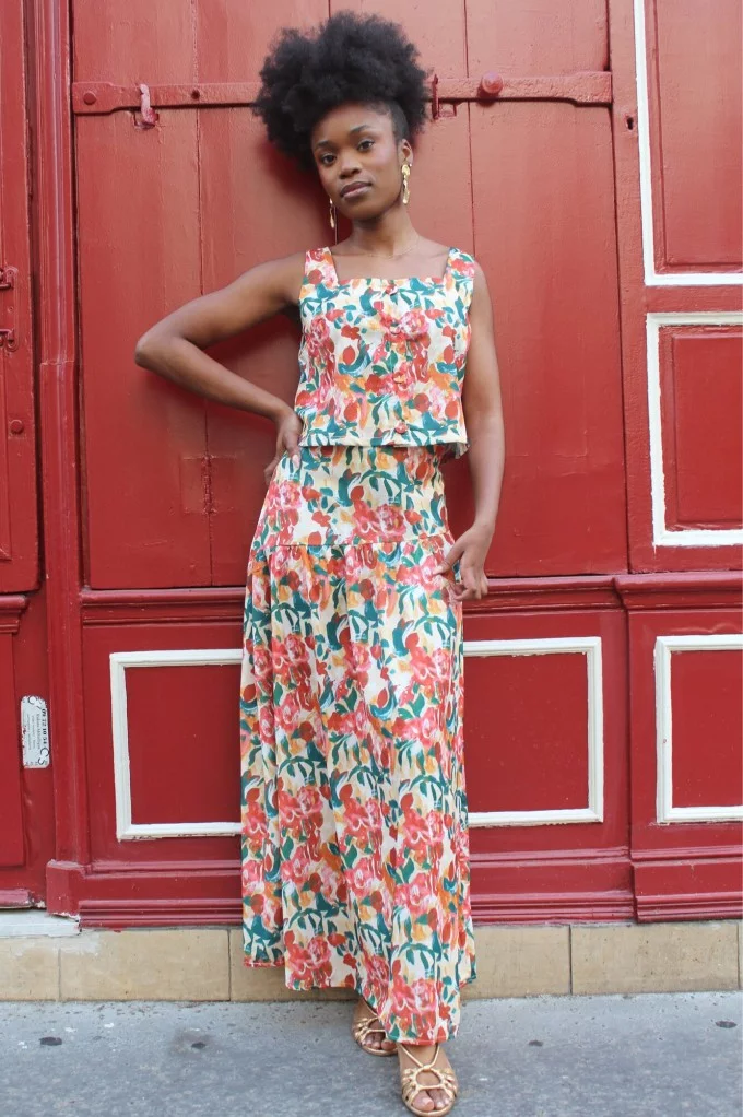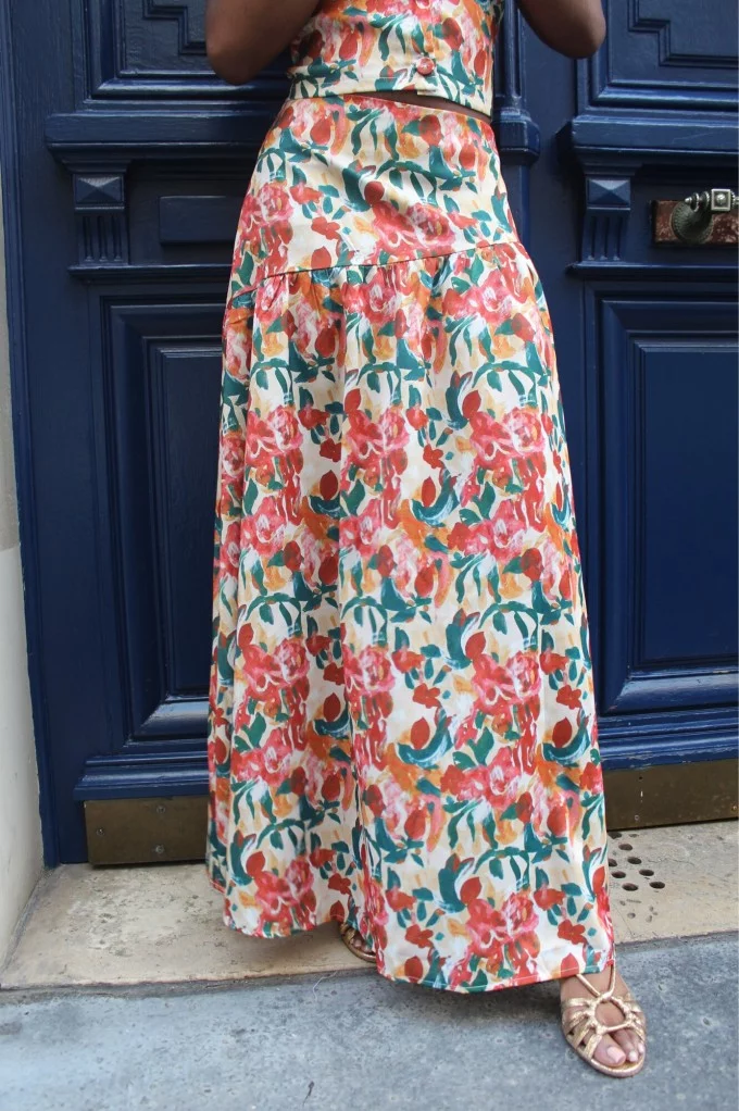 La jupe Arty séduit par son imprimé floral vibrant, mélange de teintes chaudes et de touches végétales, parfait pour illuminer votre look. Avec sa coupe fluide et sa longueur maxi, elle sublime toutes les silhouettes et accompagne vos mouvements avec légèreté. Que ce soit pour une escapade estivale, un mariage bohème ou une soirée artistique, cette jupe est la pièce forte qui fait toute la différence. Associez la à un top assorti ou à une blouse unie pour un look aussi chic que naturel ! Allez hop, dans la Box !