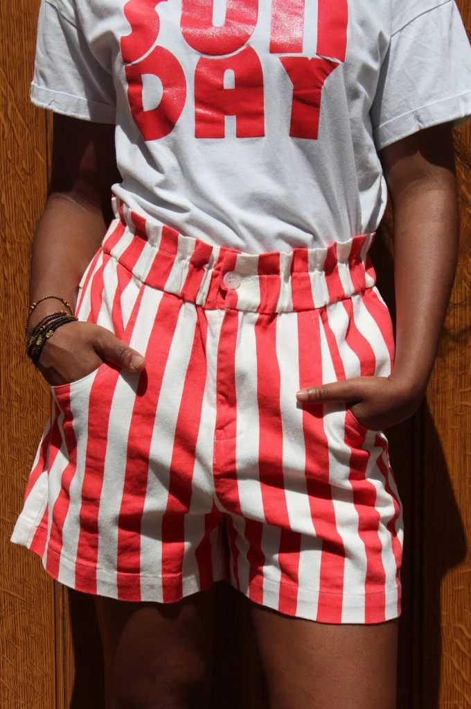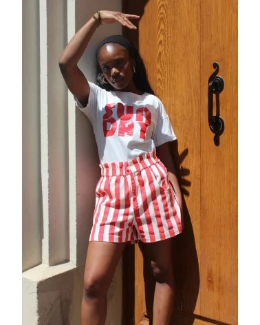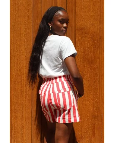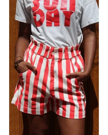 Avec ses rayures rouges et blanches et ses petits volants délicatement placés en haut du short, le modèle Playa est à la fois frais, féminin et stylé. Parfait pour vos journées ensoleillées, il apporte une touche de légèreté à votre tenue tout en mettant votre silhouette en valeur.