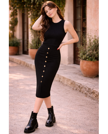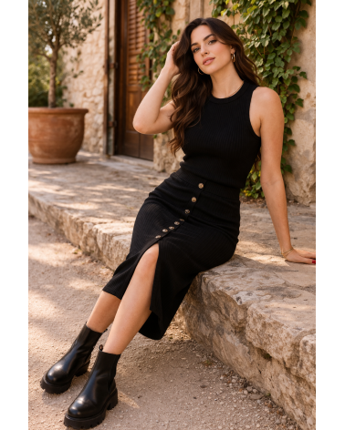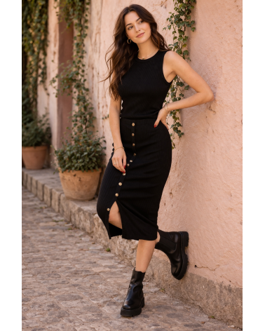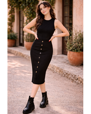 La jupe Jersey a une coupe slim et s'arrête sous le genou.