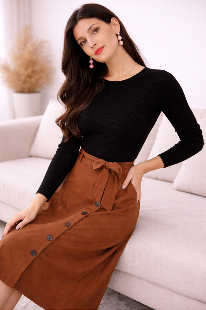 • Jupe longue marron.