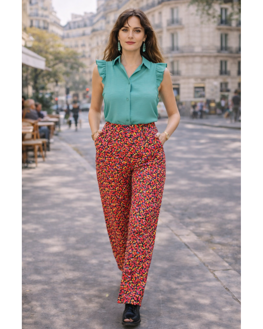 Ce pantalon fleuri est idéal pour les beaux jours. Accompagné d'une paire de talons ou de baskets, et le tour est joué !
