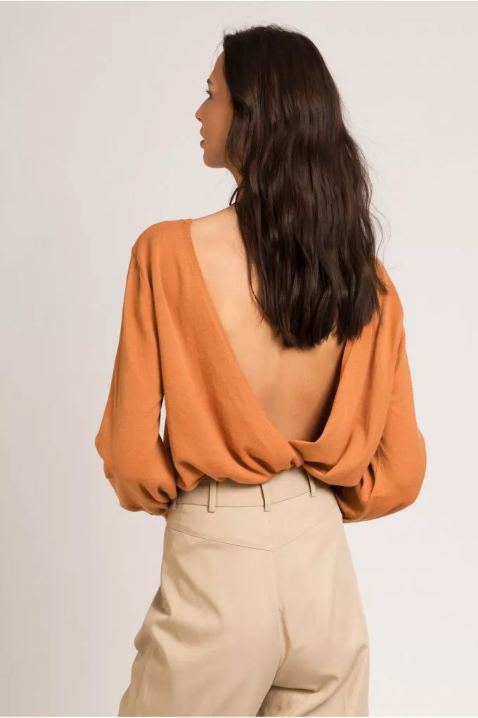Le pull Laglae caramel apporte féminité à votre look avec son dos dénudé ! Louez-le, vous ne le regretterez pas !