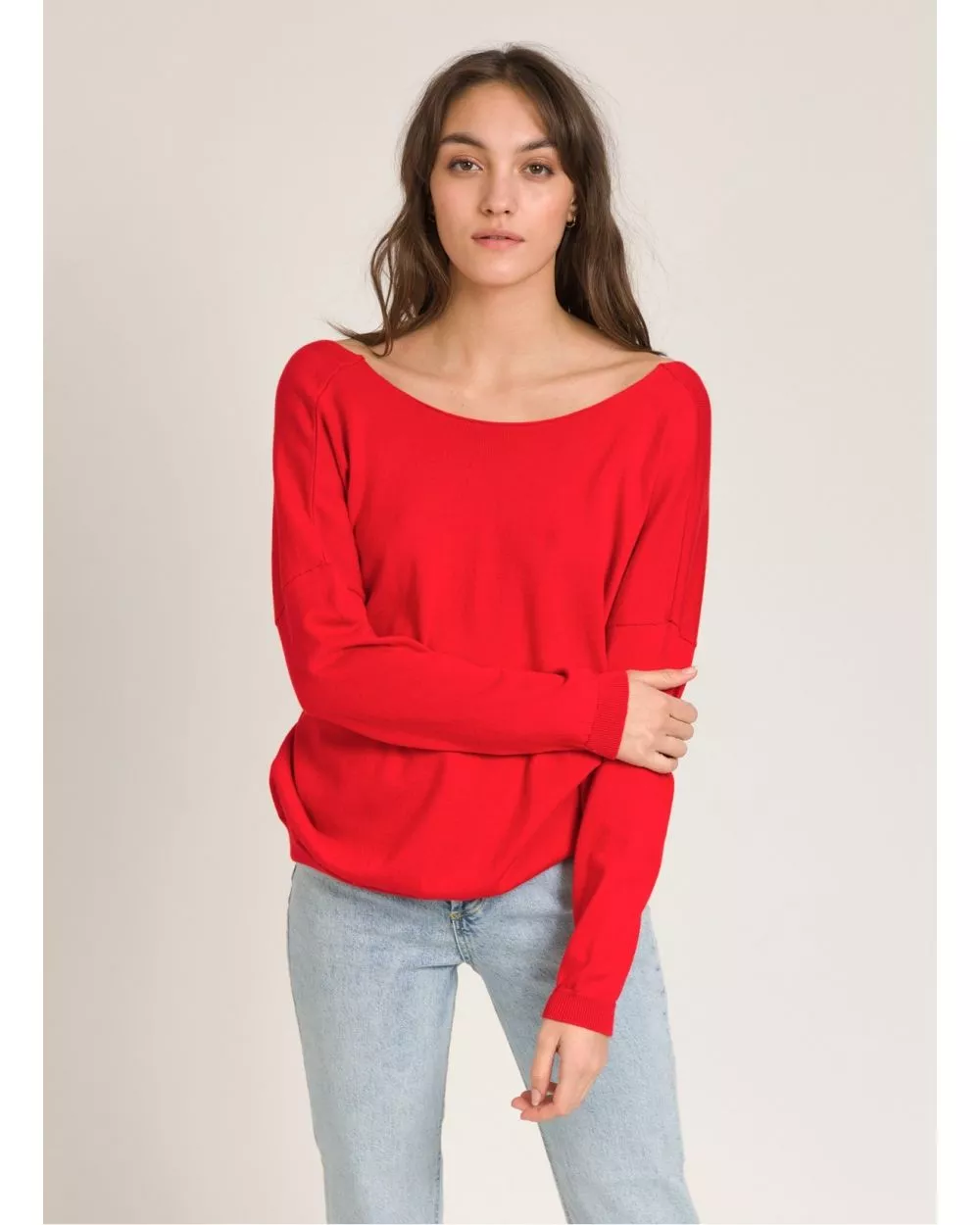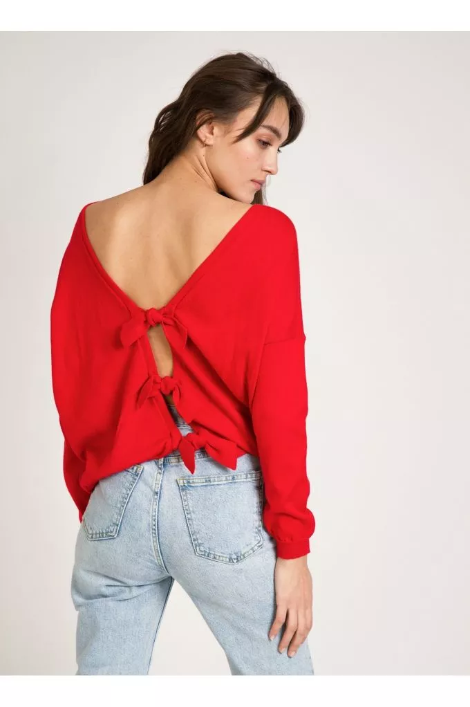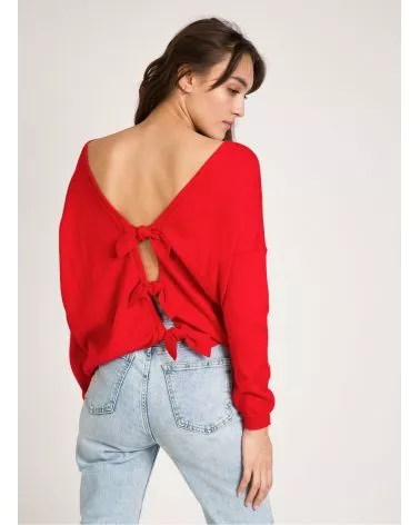 Le pull Lowen Rouge est un pull ample en maille noué au dos, pour un look casual et féminin ! À louer absolument !