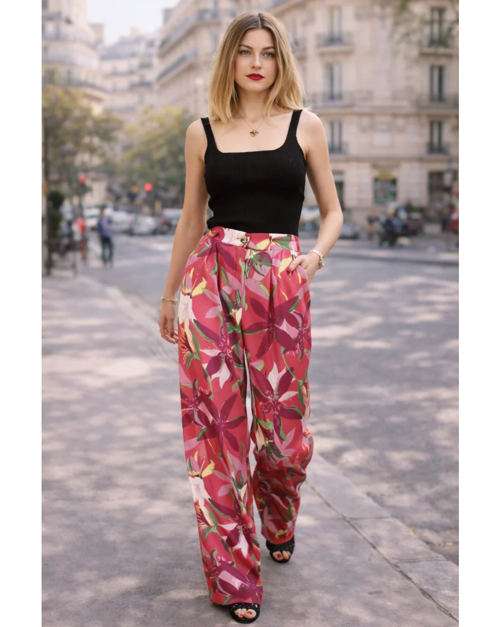Le pantalon Sacha Rose s'accorde avec tout. Sa matière fluide le rend très agréable à porter.