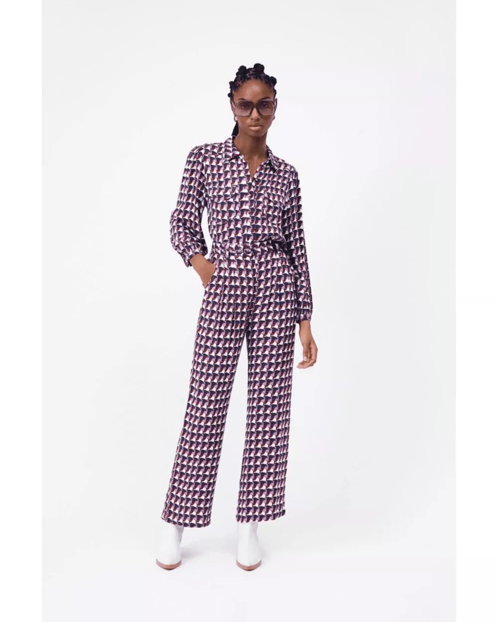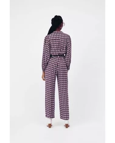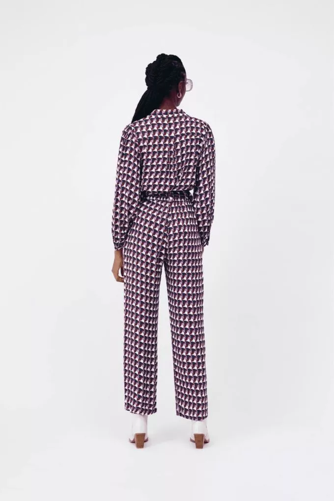 Le pantalon John est lest fluide à imprimé vintage géométrique. Il s'accorde avec tout, louez-le !