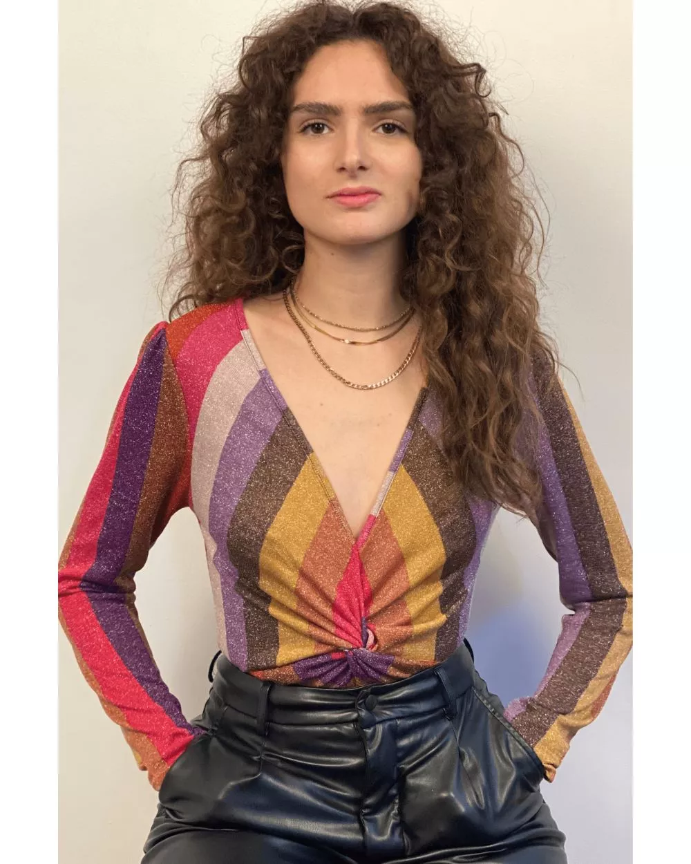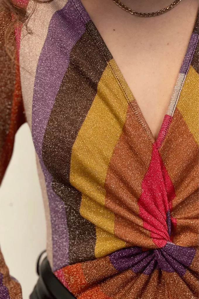 Le body Mathilde à rayures manches longues, est un body à paillettes. Louez-le pour vos looks de soirée !