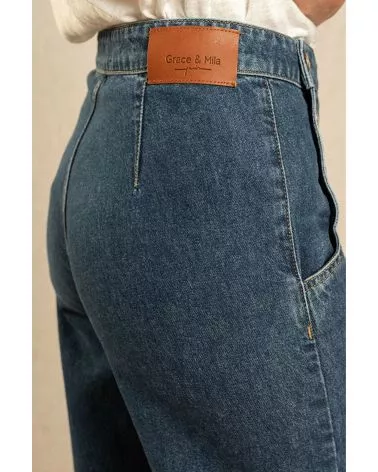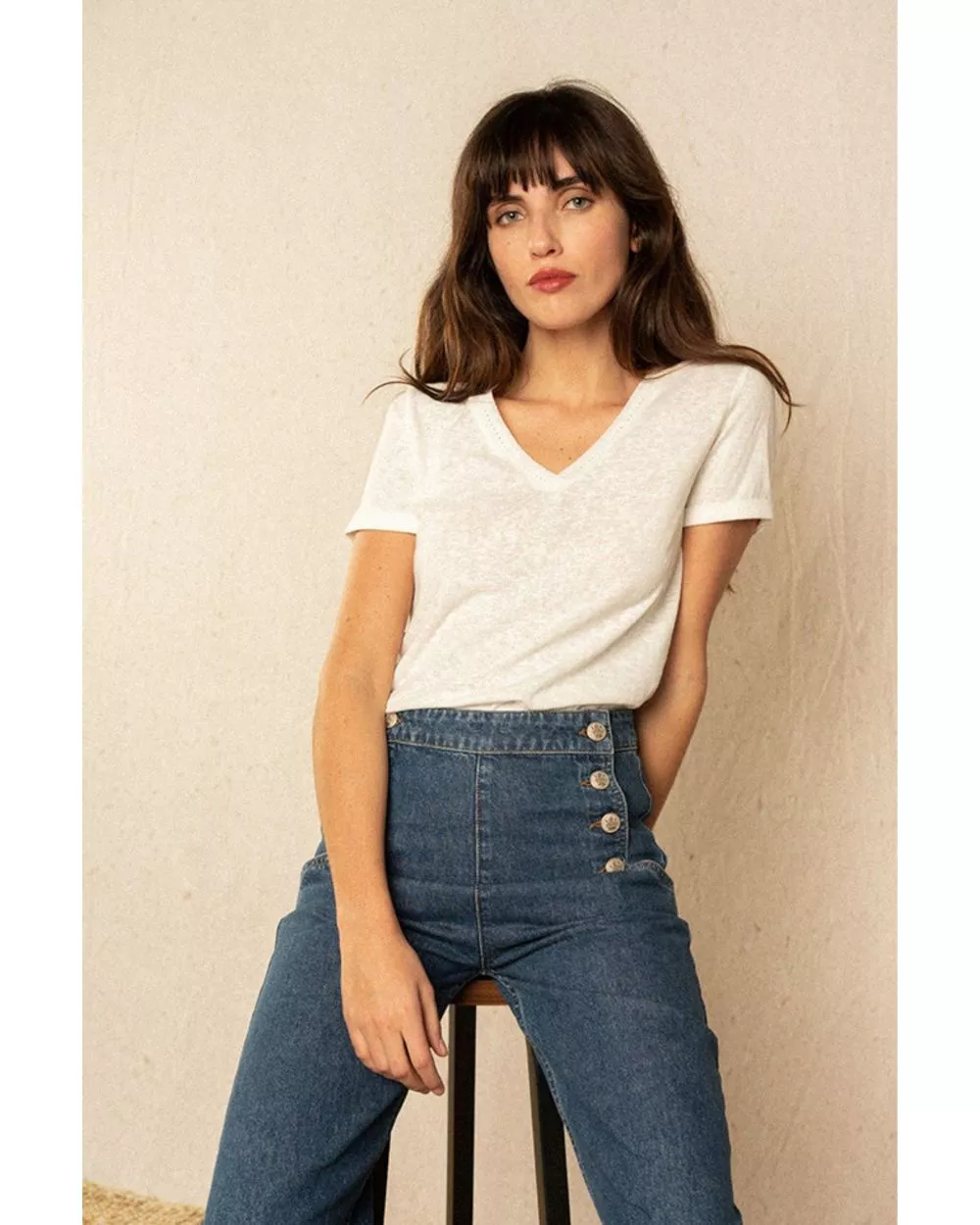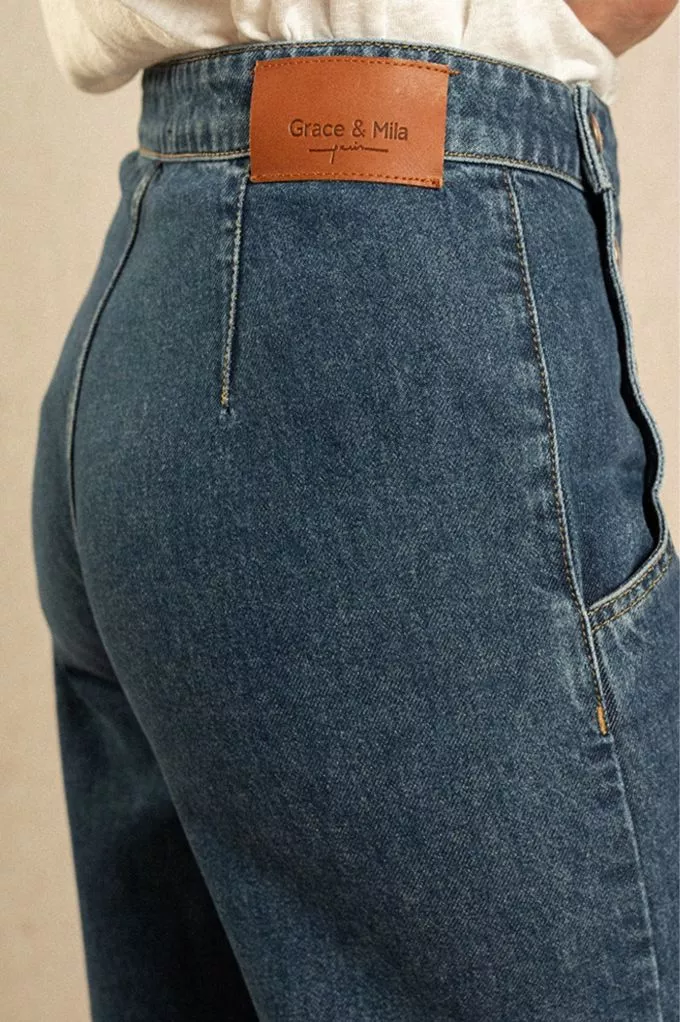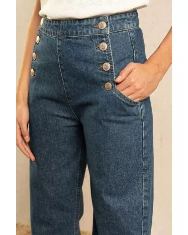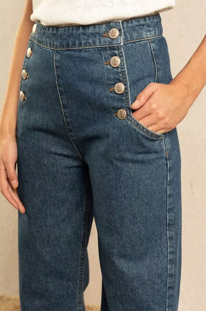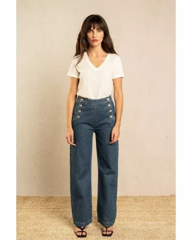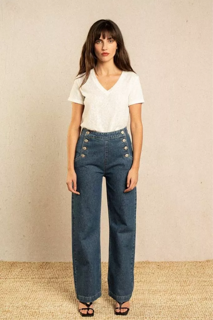 Un jean inspiré de la mode des sixties ! Sa coupe rétro et ses jolies boutons en font une pièce mode iconique. On aime sa coupe droite qui convient à toutes les morphologies. Sa taille haute allonge naturellement la jambe pour une allure tellement élégante.