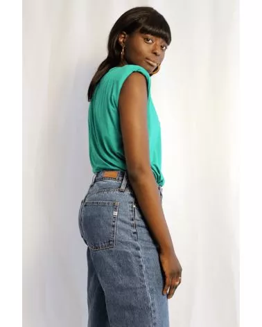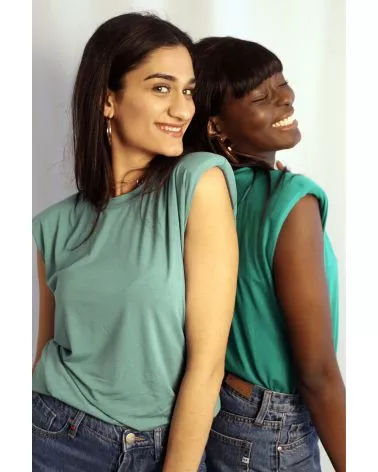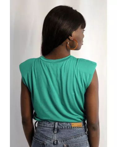 Le T-shirt Iva est un T-Shirt sans manche vert. Ce T-Shirt à épaulettes est un basique revisité pour votre garde robe ! Louez-le pour vos looks du quotidien !