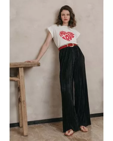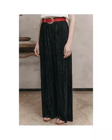 Le pantalon Judi est un pantalon large, plissé et fluide. L'allure du pantalon attire, et souligne la démarche avec élégance. On se sent bien dans son look, et on se délecte du confort que nous offre cette pièce qui fait sensation.