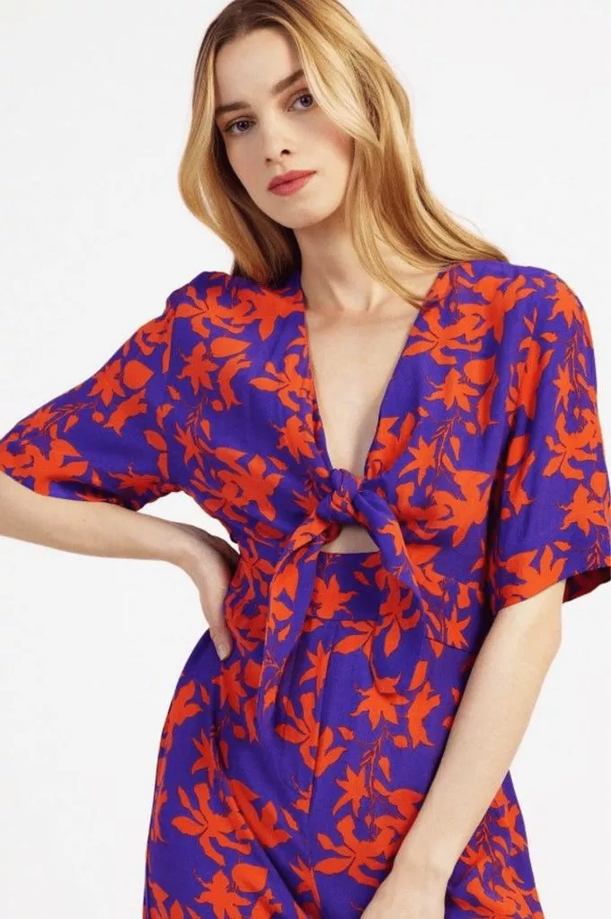 Vous allez totalement craquer pour la combinaison imprimée MELVIL. On l'aime pour sa coupe parfaite, ses manches courtes et son élastique dans le dos. Son charme fou ? Son nœud qui ajoute un détail fashion à cette pièce.