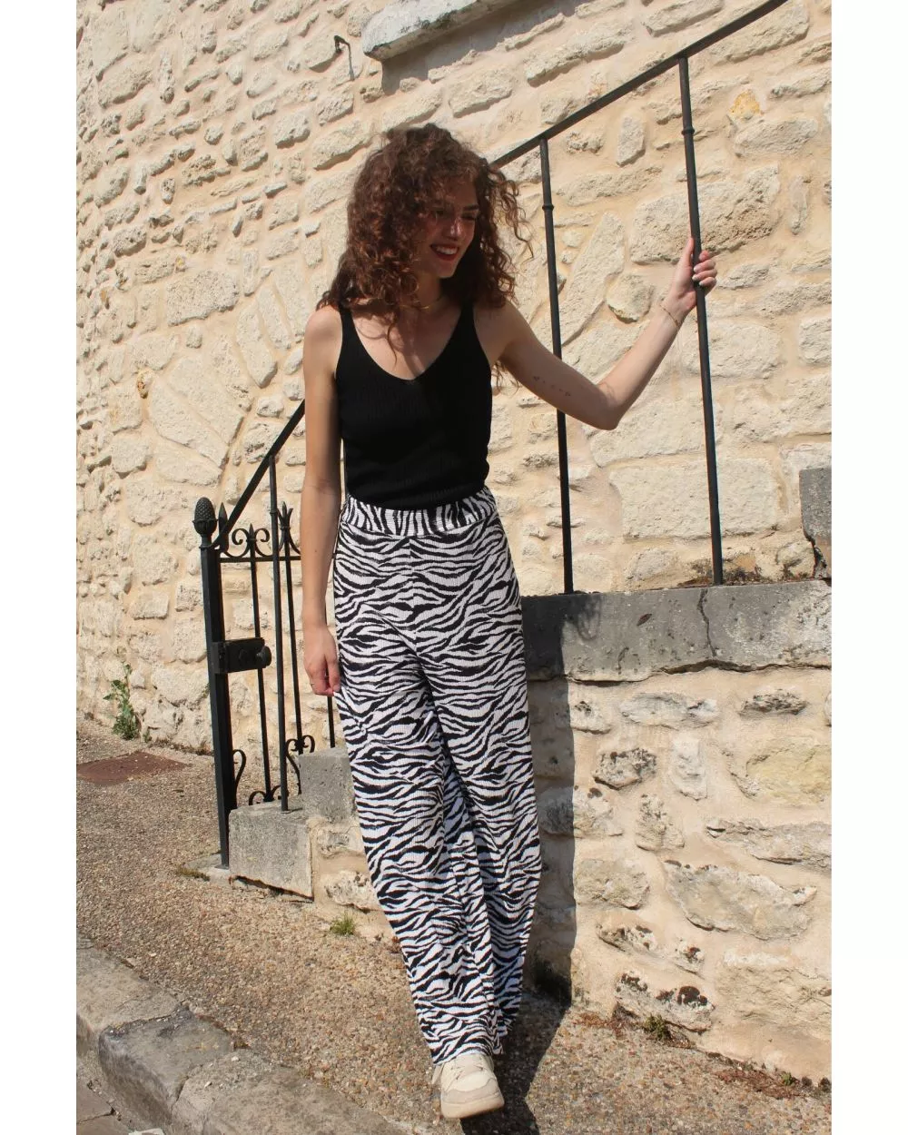 Le pantalon Oden zébre est un pantalon large, plissé et fluide. L'allure du pantalon attire, et souligne la démarche avec élégance. On se sent bien dans son look, et on se délecte du confort que nous offre cette pièce qui fait sensation.