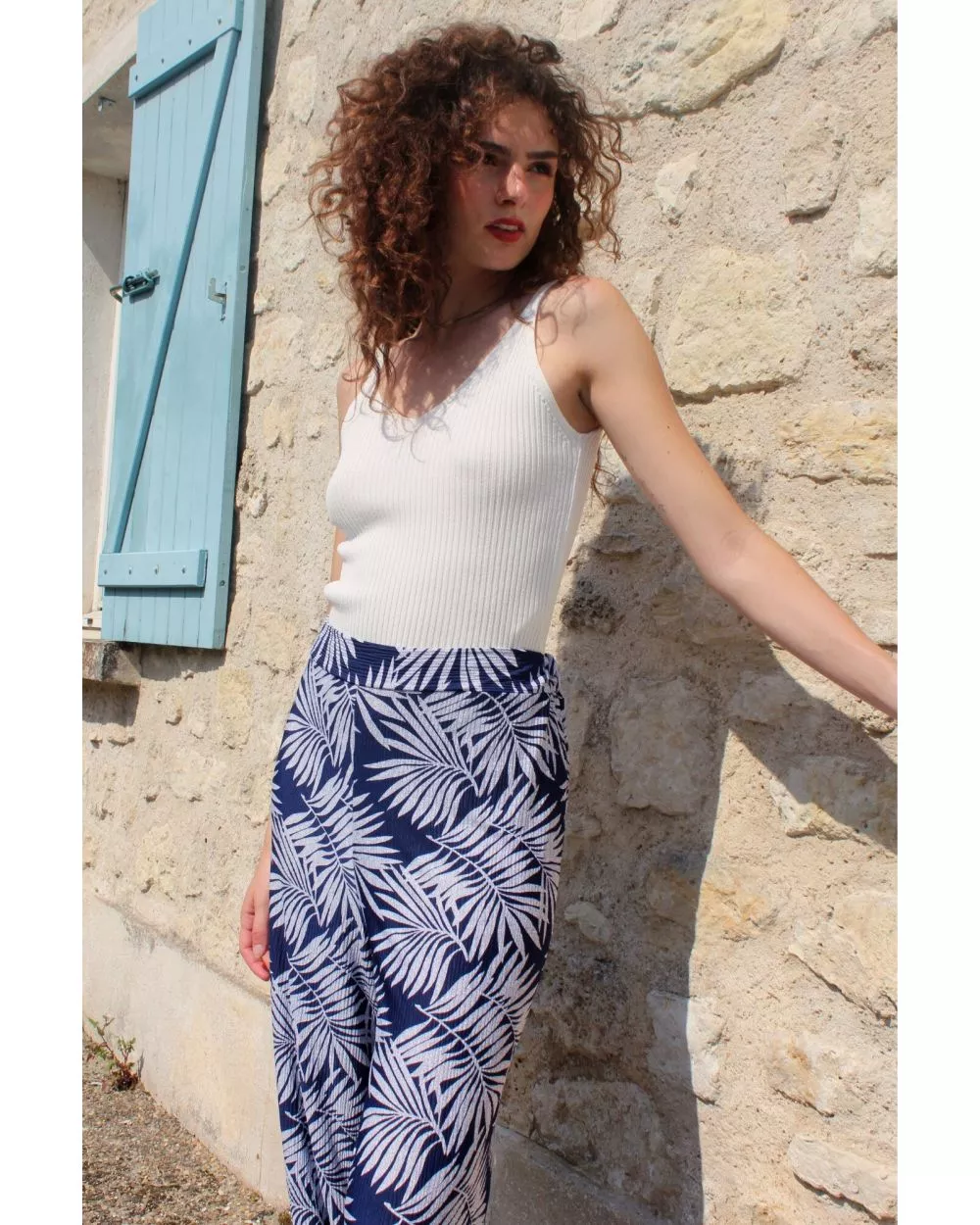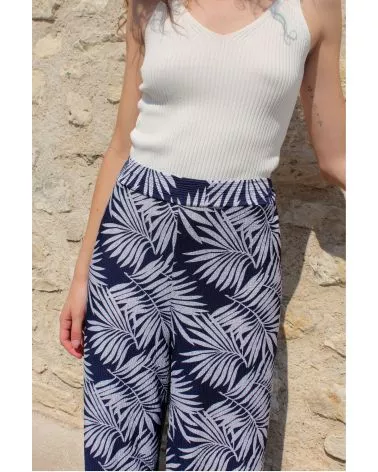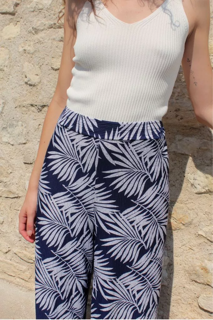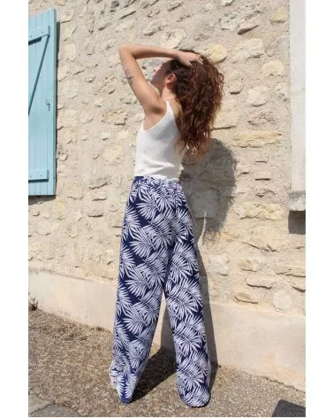 Le pantalon Oden palmier est un pantalon large, plissé et fluide. L'allure du pantalon attire, et souligne la démarche avec élégance. On se sent bien dans son look, et on se délecte du confort que nous offre cette pièce qui fait sensation.