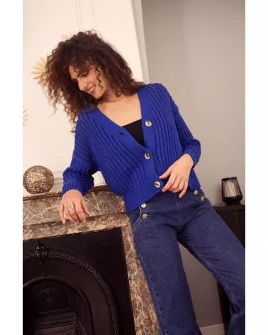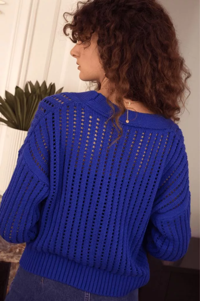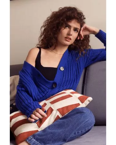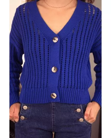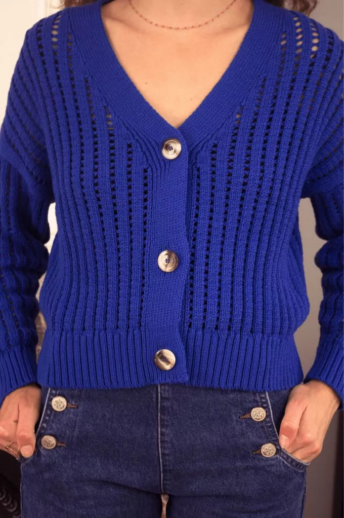 Le cardigan Leflora séduit par sa maille ajourée et sa coupe courte. On aime le porter ouvert ou fermé pour adopter un look casual et décontracté. À louer absolument !