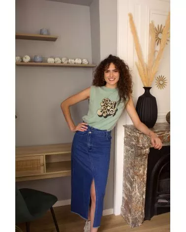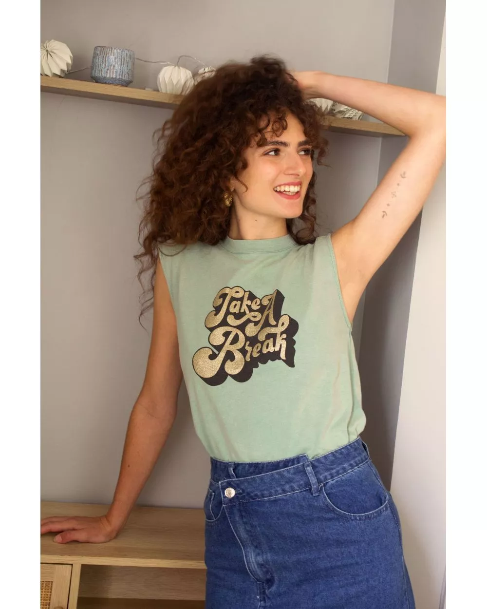 Laurane est un T-Shirt sans manches avec un imprimé rétro. On adore le style et la coupe droite de cette pièce. Allez hop, dans la box !