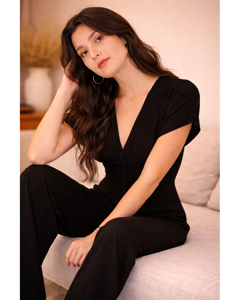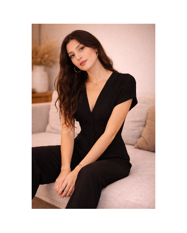 Cette combinaison pantalon est parfaite pour une grande occasion comme un mariage ou une soirée avec des talons ou pour un look bohème avec une paire de baskets. Sa taille cintrée et ses jambes évasées la rendent très féminine et singulière.