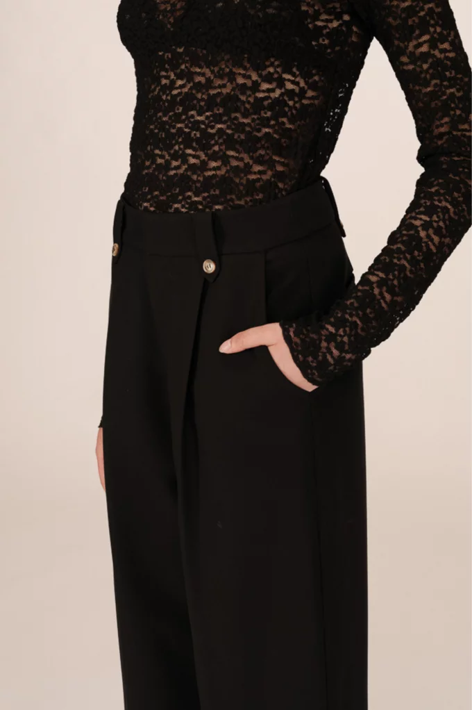 Un intemporel revisité avec une touche de caractère ! Le pantalon Septime allonge la silhouette avec sa coupe large et taille haute, rehaussée de deux boutons dorés pour une note sophistiquée. Fluide et chic, il se porte aussi bien en journée qu’en soirée. Allez hop dans la box !