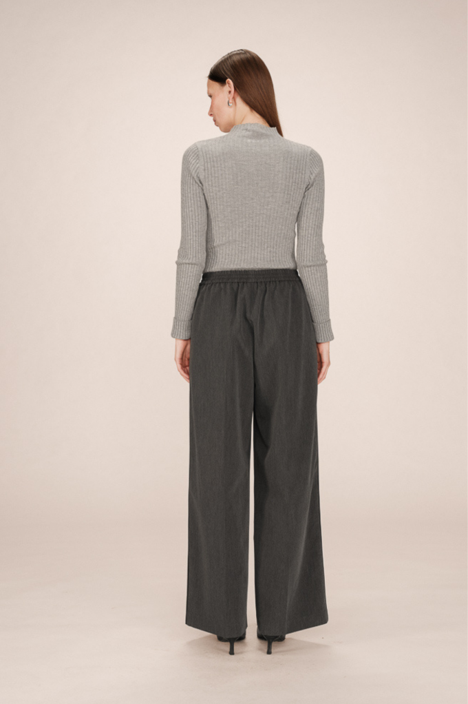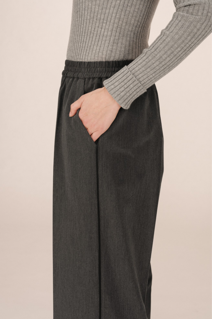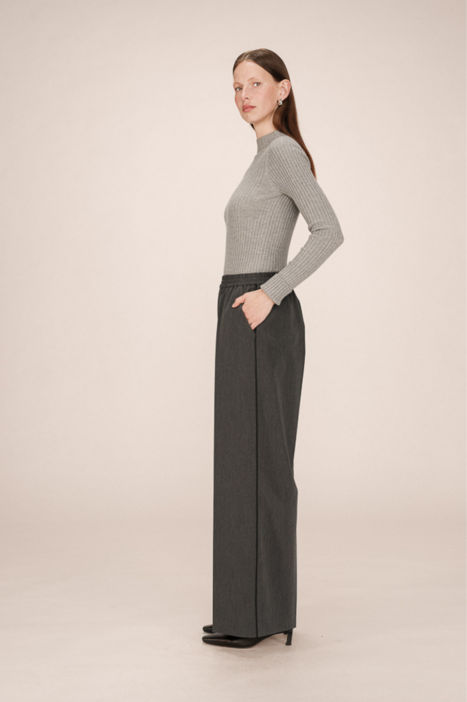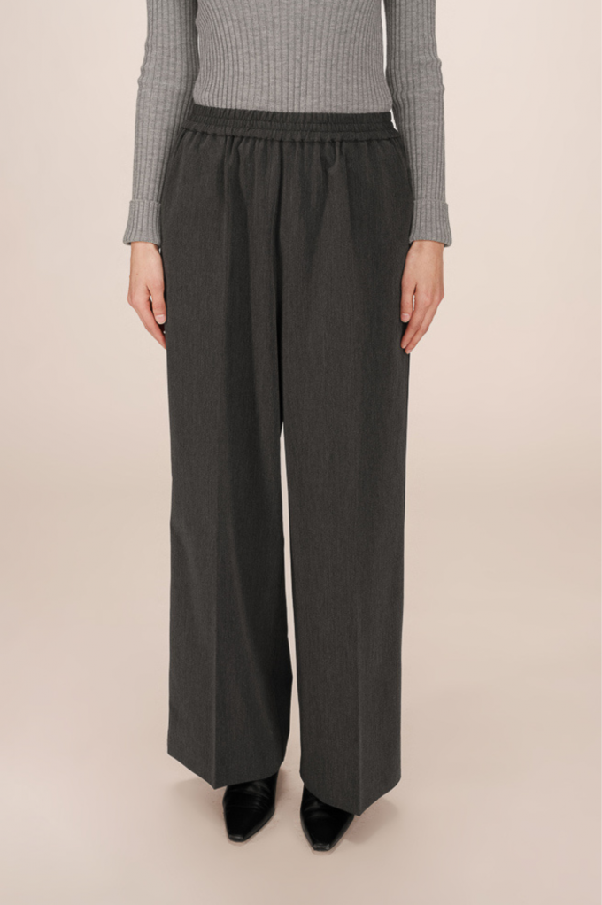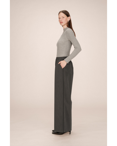 Un basique revisité avec une touche tailoring ! Le pantalon Sweeney affiche une coupe large et une taille élastiquée pour un confort optimal, dans un tissu gris chiné au tomber parfait. Idéal pour un look preppy ou une silhouette minimaliste. Allez hop dans la box !